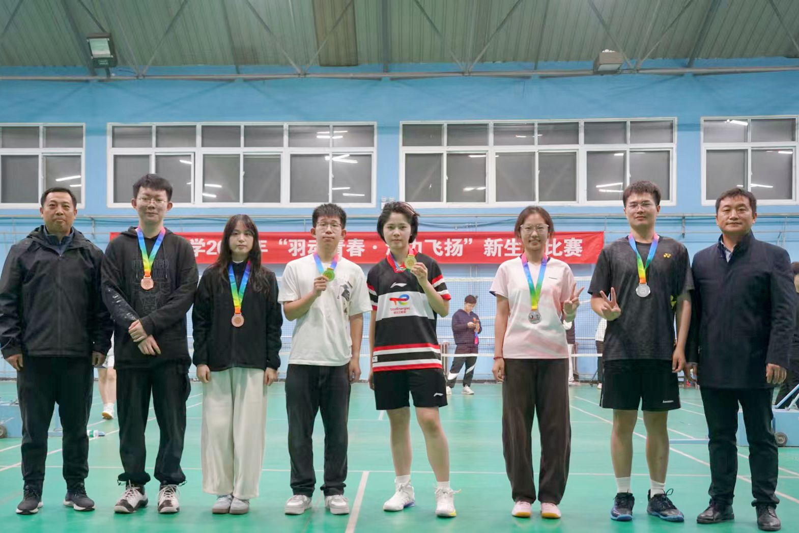 2024年“羽动青春·活力飞扬”新生杯比赛决赛,我院学生踊跃参加,展现出了出色的竞技水平和精神风貌。我院2023级本科生刘媛媛获得甲组女双一等奖,2023级本科生姬堉获得甲组混双二等奖,2024级本科生闫程旭获得甲组男单三等奖。