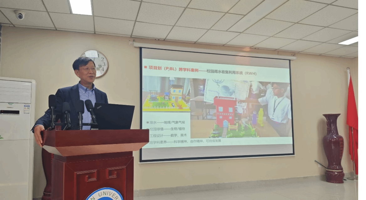 第一阶段进行学术报告会,学院百余名师生参加。会议由学院学科教学(地理)专业硕士点负责人张广花主持。段玉山进行了一场“初中地理课程改革——对地理跨学科学习的思考”的专题报告。报告从跨学科的相关概念、跨学科学习的路径、跨学科学习专题选择与案例、跨学科主题学习的设计与实施以及跨学科主题学习的困境与挑战五个方面展开。段玉山着重强调了跨学科学习具有提升批判性思维和问题解决能力等诸多优势,地理学的综合性决定了其处于跨学科的“领导”地位,问题教学法和项目式学习法是落实跨学科学习的两种有效途径,以及跨学科主题学习的设计与实施需紧密围绕地理课程的核心素养展开等重要观点与设计思路。随后,段玉山与学生们展开深入交流,耐心解答学生们的诸多疑问。学生们纷纷表示收获颇丰,不仅开阔了视野、更新了理念,更对跨学科学习有了全面深刻的认识。最后,张广花对报告做出总结,指出我们要从培养全面发展人的视角来看跨学科学习的重要性和必要性,并强调了“做中学”“悟中学”对学生学习的价值和意义。