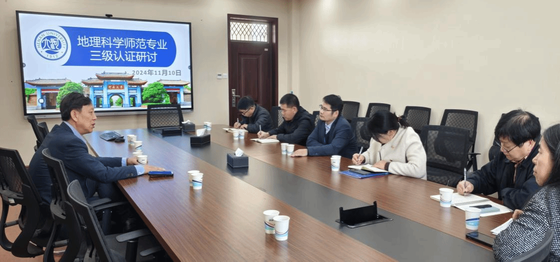 第二阶段在地学楼301会议室举行了地理科学师范专业三级认证筹备研讨会。会议由学院党委委员、副院长丁志伟教授主持,学院党委副书记徐小军、河南大别山森林生态系统国家野外科学观测研究站副站长卢训令以及地理科学系朱连奇、赵自胜、刘桂芳、张广花等老师出席了会议。首先,丁志伟强调地理科学师范专业三级认证工作的重要性,介绍了我院地理科学师范专业三级认证工作的推进情况。然后,段玉山就目前我国高校地理科学师范专业三级认证情况进行了介绍,并对我院的筹备工作提出了针对性的发展建议,强调师范专业的教师要全员参与并深入理解师范认证的要义,要认真梳理并分析二级到三级的进阶指标的内涵,要分析卓越人才培养在机制上、制度上和质量保障上的重要举措。接着,老师们针对三级认证推进过程中的困惑与问题和段老师进行了深入的交流与探讨。最后,丁院长对研讨会的内容进行了总结,进一步强调接下来将全力推进地理科学师范专业三级认证筹备工作,并对段玉山教授的认真指导表达由衷的感谢!
