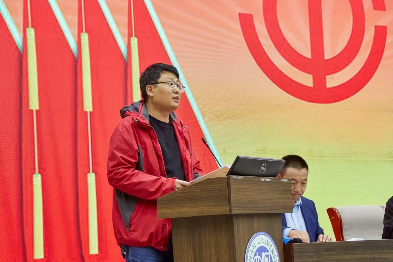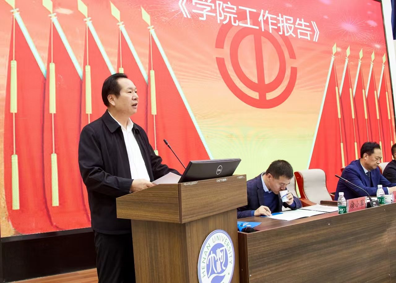 党委副书记、执行院长赵威以《百年地理启新章 乘风破浪续辉煌》为题作学院工作报告。他指出,2024年地理与环境学院深入贯彻习近平新时代中国特色社会主义思想,全面贯彻党的教育方针,紧密围绕地理学科冲“A”和学校“双一流”建设大局,全院上下齐心协力,以开拓创新的精神不断前行。同时学院地理学科建设有序推进、人才培养质量稳步提高、师资队伍建设卓有成效、科研创新能力持续提升、国际合作交流不断深入。在特色研究领域取得了众多成果。展望新的一年,学院将以建设研究型特色学院为主线,以建设中原特色、国内领先、世界一流的地理学科为目标,不断推动地理与环境学院的高质量发展。