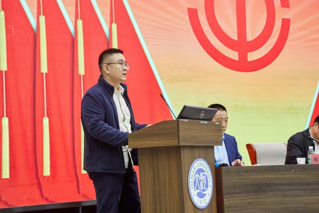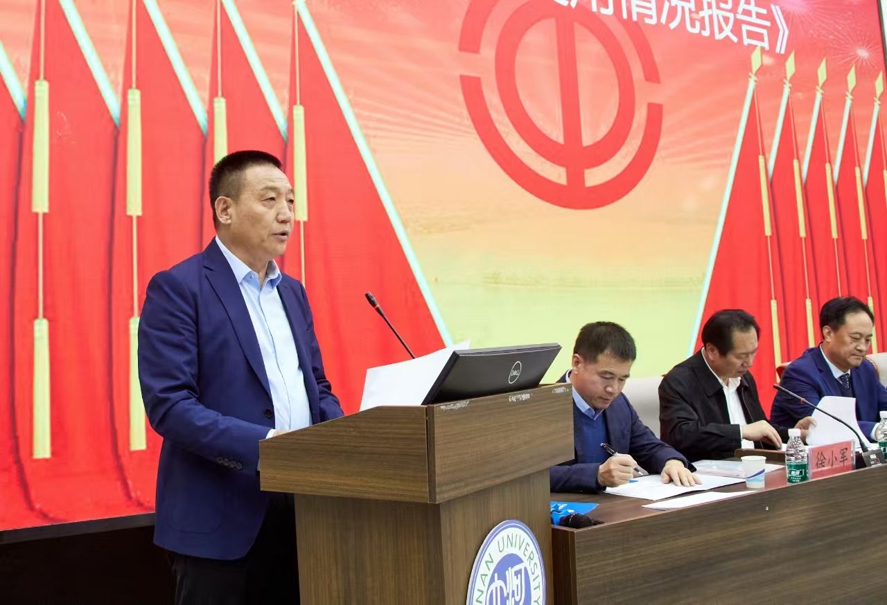 刘宇代表校工会对地理与环境学院七届三次教职工暨工会会员代表大会的胜利召开致以热烈的祝贺,并表示此次大会的召开对动员全院广大教职工和全面促进学院高质量发展、创新性发展具有十分重要的意义。他指出,“近年来地理与环境学院全体教职工吃苦耐劳,甘于奉献,成功举办了第八届海峡两岸经济地理学研讨会、中国地理学会春季年会、中国地理学会农业地理与乡村发展专业委员会2024年学术年会、合作减贫与乡村发展研讨会等国内外学术会议。在黄河流域高质量发展、中原城市群建设、乡村振兴、环境生态保护等领域积极作为,充分展现出地理与环境学院拼搏进取、团结协作、开拓创新的精神。校工会也将继续大力支持学院发展,共同推动地理与环境学院在未来的发展道路上创造更加辉煌的成就。”