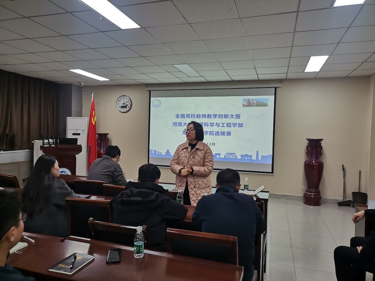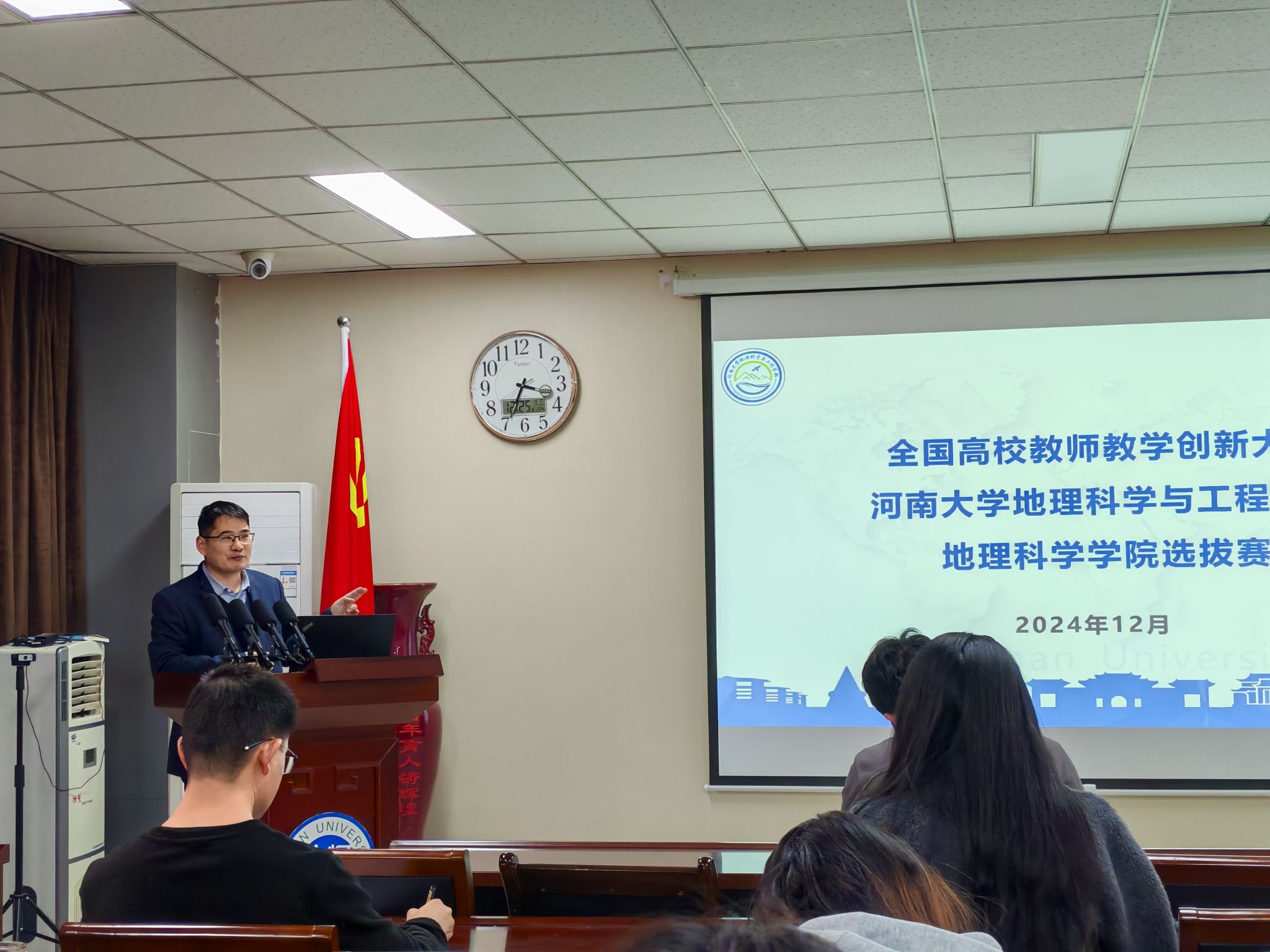 关于全国高校教师教学创新大赛校内选拔赛的通知》的安排,学院在地学楼二楼报告厅举行了全国教师教学创新大赛院内选拔赛。本次大赛由学院教务办主任刘德新主持,副院长丁志伟、地理科学系主任李开封、区域与城市科学系主任翟彬等师生参与了此次活动。