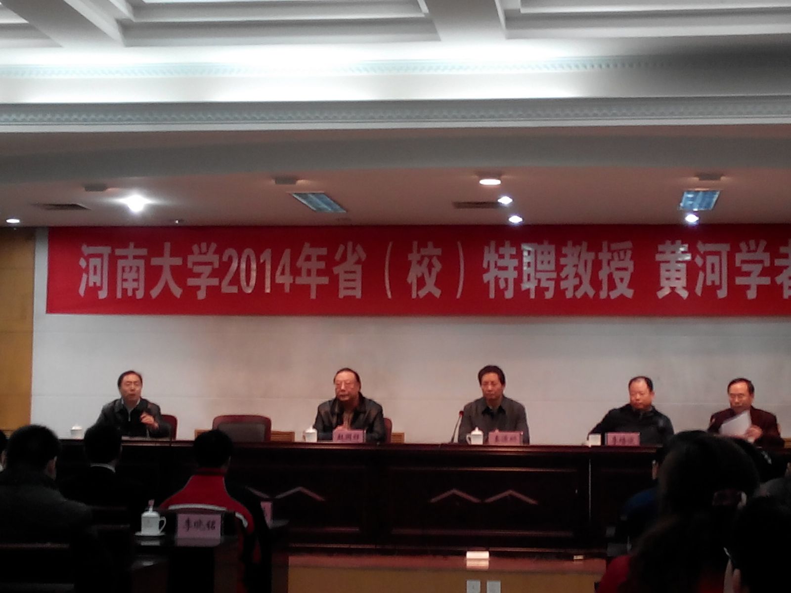 尚富德首先向与会人员介绍了2014年我校省(校)特聘教授、黄河学者的推荐、遴选情况。李培俊宣读了《省教育厅关于同意武四新等8人受聘河南省高等学校特聘教授讲座教授的批复》;赵国祥宣读了黄河学者和校级特聘教授受聘人员的名单及岗位。