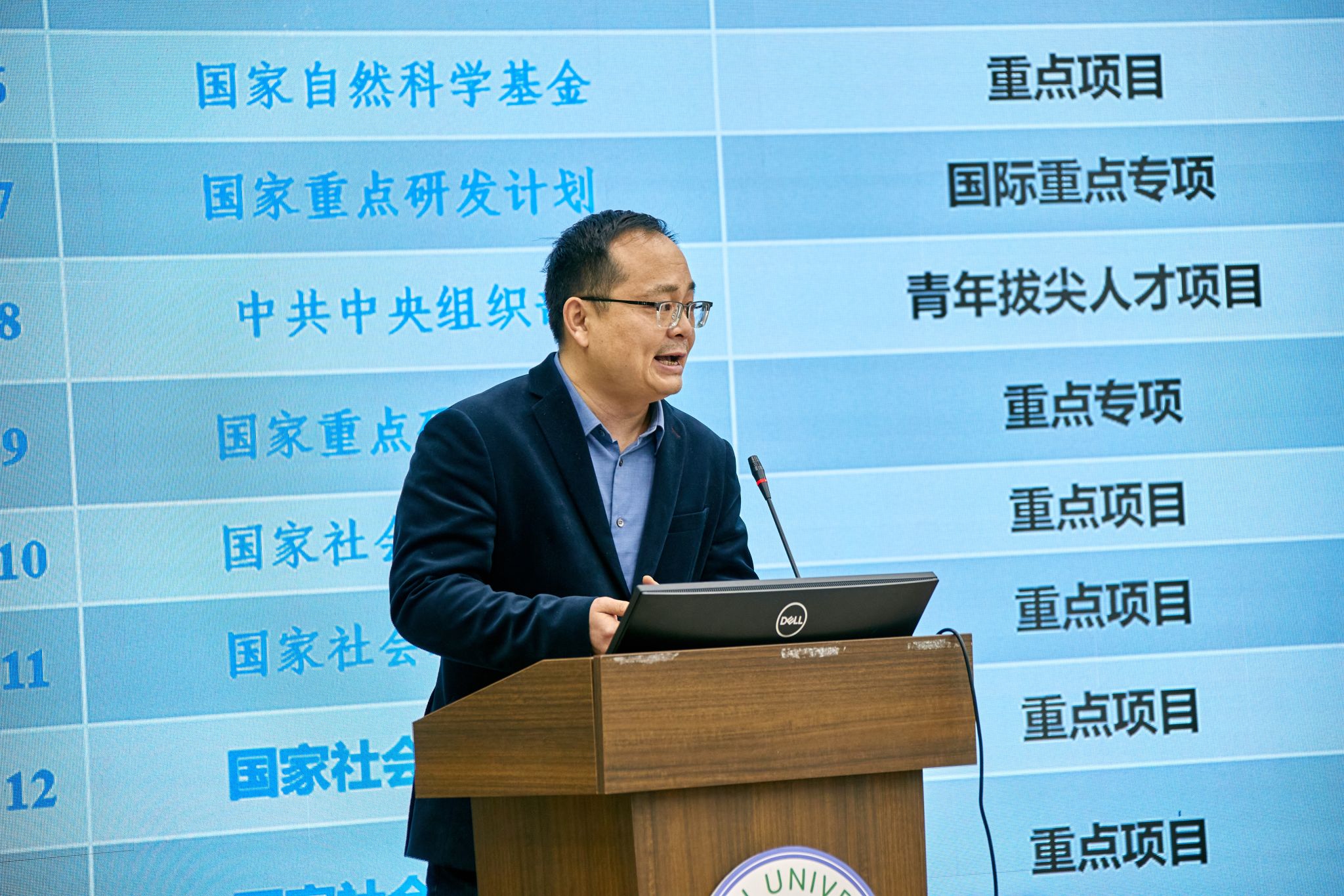 大会报告环节由苗长虹教授主持。刘彦随以《凝心聚力、奋勇争先,加快构建一流地理学科发展新格局》为题作首场报告。他系统总结了2024年学部在党建、学科建设、人才培养等领域的成效,同时提出“135”发展规划,即“1年学科评估上台阶、3年交叉学科新突破、5年一流学科走在前”,并部署2025年“三建三学年”重点任务,强调以高质量党建和学科跨越式发展统揽全局。学院执行院长赵威以《2021-2025年地理学科建设回顾与评估展望》为题作报告,深入剖析了学科晋A面临的短板,提出以顶层设计和资源统筹打好评估攻坚战。学院党委书记乔家君聚焦创新文化与思政育人,提出以文化赋能师资建设和学科发展。学部主任助理董冠鹏教授则详解2025年度科研规划,明确通过聚焦“36X领域特色”、实施“揭榜挂帅”机制、强化学术交流等举措,补足高水平论文与科研项目短板,力争产出标志性成果。苗长虹教授总结指出,本次大会既是学部成立的宣言,更是迈向一流学科的冲锋号。他号召全体师生以“爬坡过坎、敢为人先”的拼搏精神,将规划转化为行动,将愿景落地为实绩,共同书写河南地理学科高质量发展的新篇章。