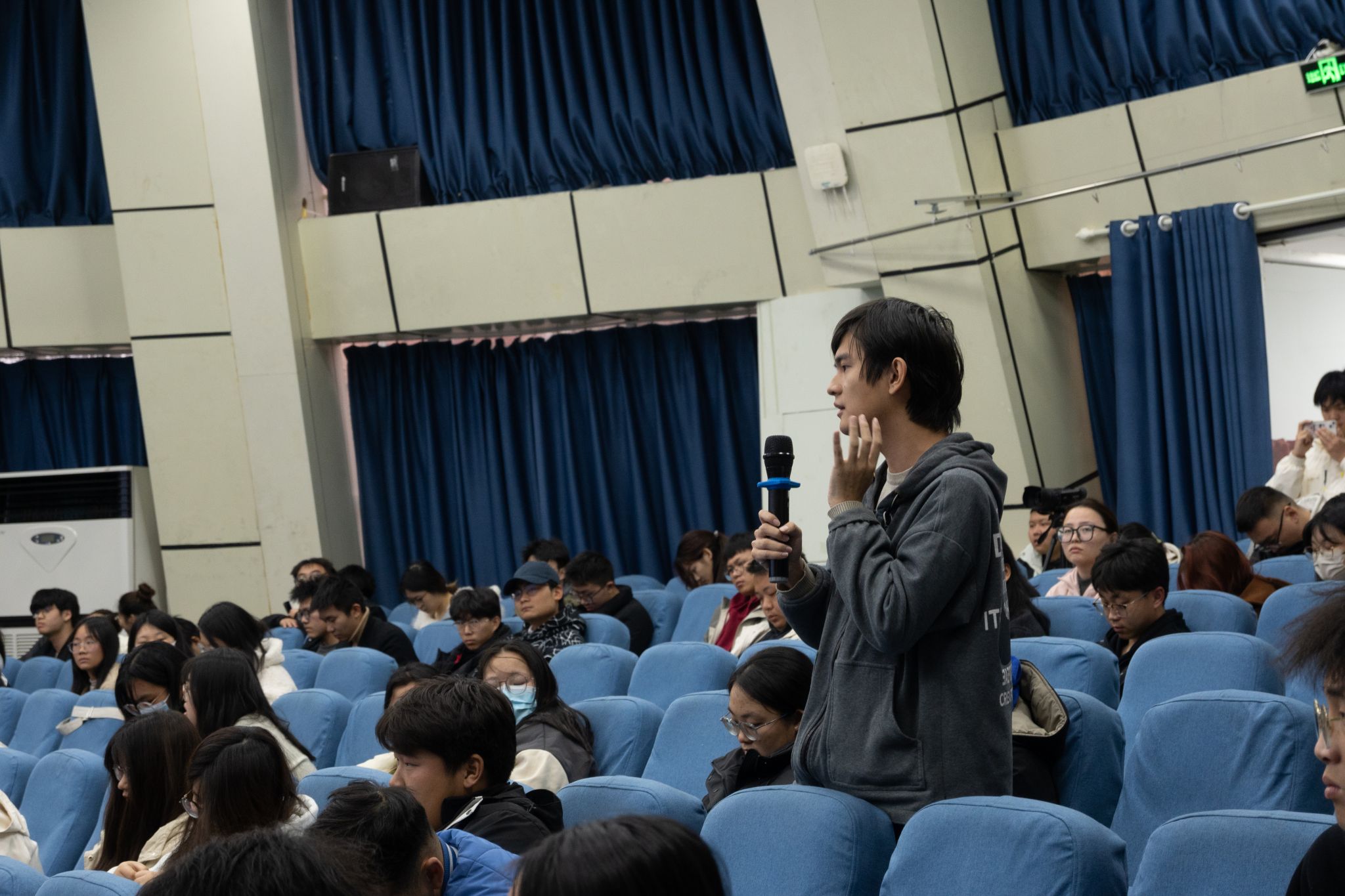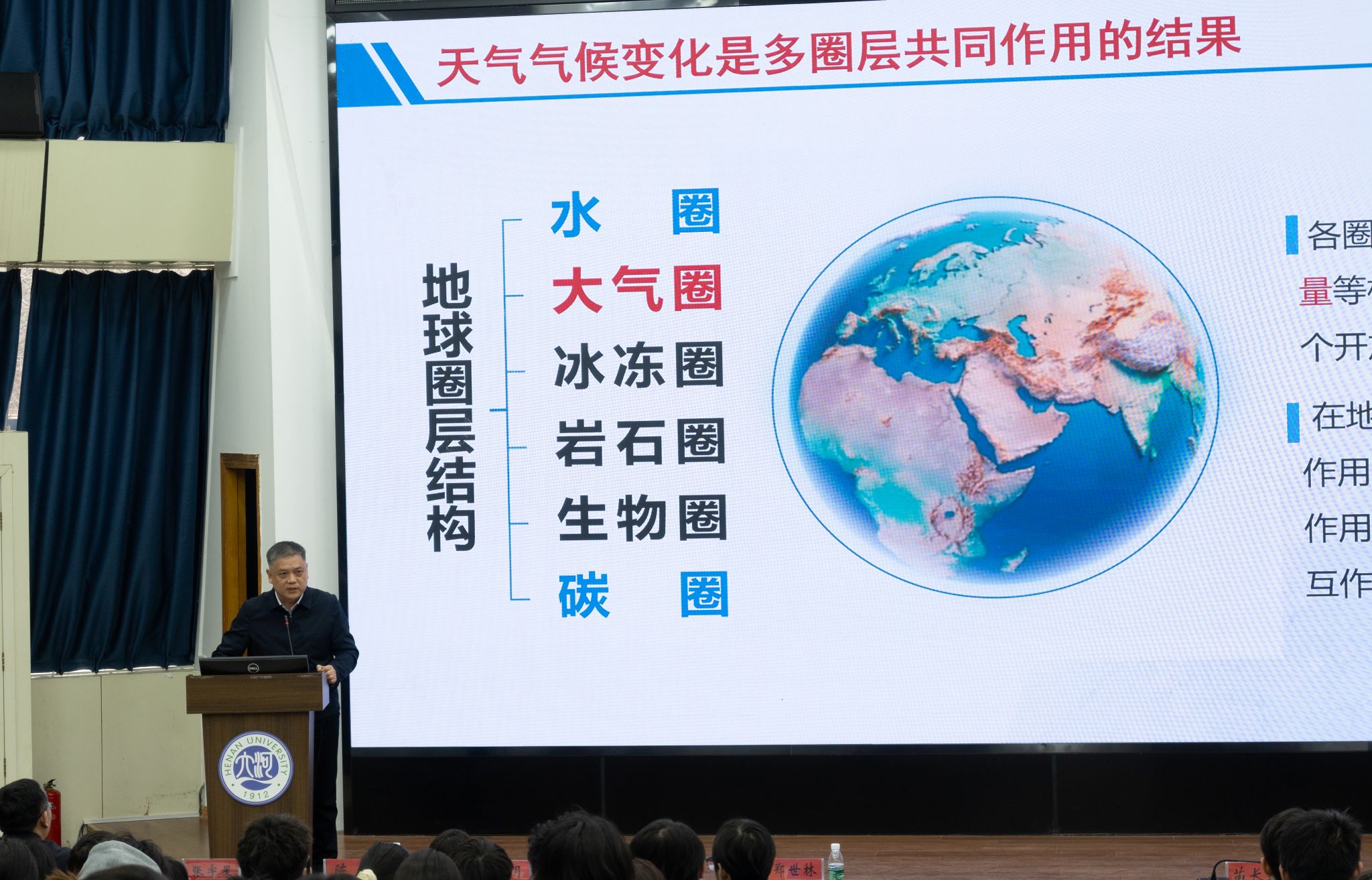 孔海江以“关注极端天气,应对气候变化”为题作专题报告。报告从极端天气气候事件定义、气候科学基本知识、为什么要了解气候变化、极端天气和气候变化、预测气候变化的影响、气候变化与日常生活六个方面展开。报告中,孔海江通过分享多个气候变化方面的研究案例,丰富了与会人员对气候变化历史维度的认知,也凸显了其对人类社会多方面的深远影响。针对当前气候变化的严峻形势,孔海江表示社会各界应共同行动起来,将应对气候变化和极端天气作为每个人的责任。无论是政府部门、企业还是个人,都应在各自的领域内积极采取措施,加强合作,共同构建抵御气候风险的坚固防线,为实现经济社会发展与生态环境保护的良性互动而努力。报告结束后,现场学生踊跃提问,与孔海江积极互动,深入探讨。
