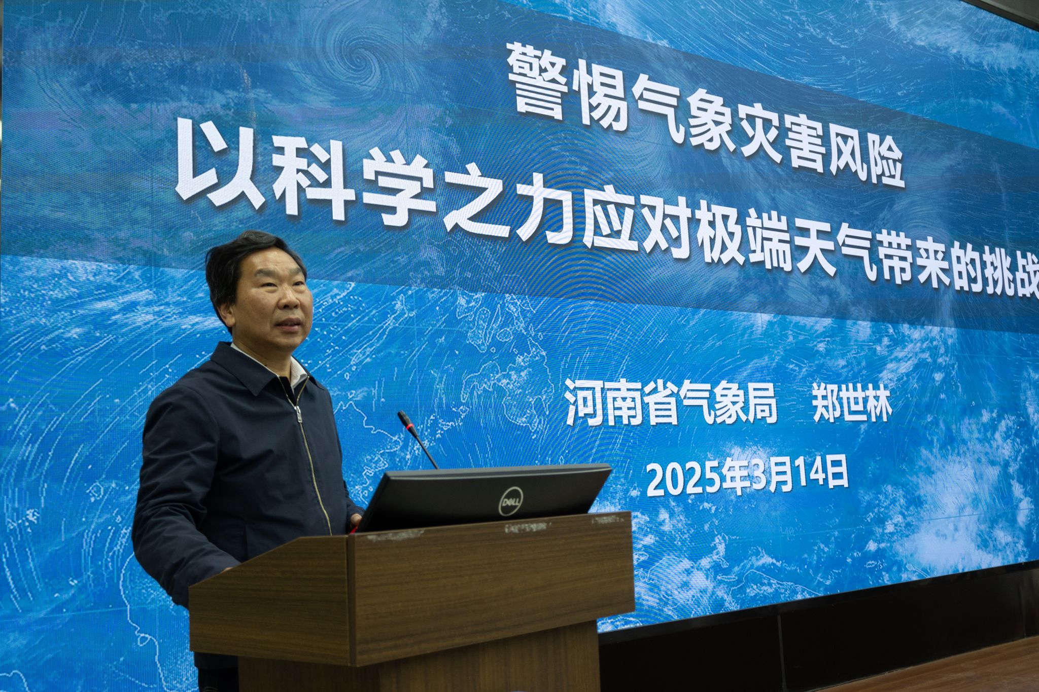 讲座正式开始前,苗长虹向与会人员阐述了本次活动的深刻意义,对郑世林和孔海江进行了简要介绍,并代表学部对他们的到来表示热烈欢迎。接着,郑世林以“警惕气象灾害风险,以科学之力应对极端天气带来的挑战”为题作专题报告。报告中,郑世林结合自身30年的项目工作经验,以详实数据和典型案例系统剖析了全球气候变暖背景下极端天气频发的严峻态势。他指出全球气候变暖正以远超预期的速度演进,气候变化已导致传统天气规律被打破,旱涝交替、冷暖波动剧烈成为新常态,给人类社会带来了前所未有的挑战。我们需以科学手段重新认知气象规律,以更好地服务于社会经济发展。在面对气候变化带来的风险与挑战,郑世林强调要不断完善监测预警体系,加强多部门联动,推动气象信息在各行各业的深度应用,形成全社会共同应对气象灾害的合力。同时,要注重气象文化的传承与普及,通过开展科普活动、建设气象文化基地等方式,提升公众的气象科学素养和防范意识。