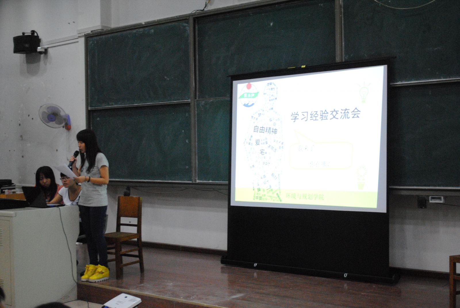 2013年10月12日,学院以解决大一新生初入大学所遇到的问题为目的,帮助新生快速融入大学生活为主旨,组织全体2013级新生在金明校区综合教学楼1303教室举办主题为“Your future is knocking-----Open the door”的学习经验交流会。出席交流会的还有环境与规划学院团委学生会主席团成员以及四名优秀高年级学生代表。