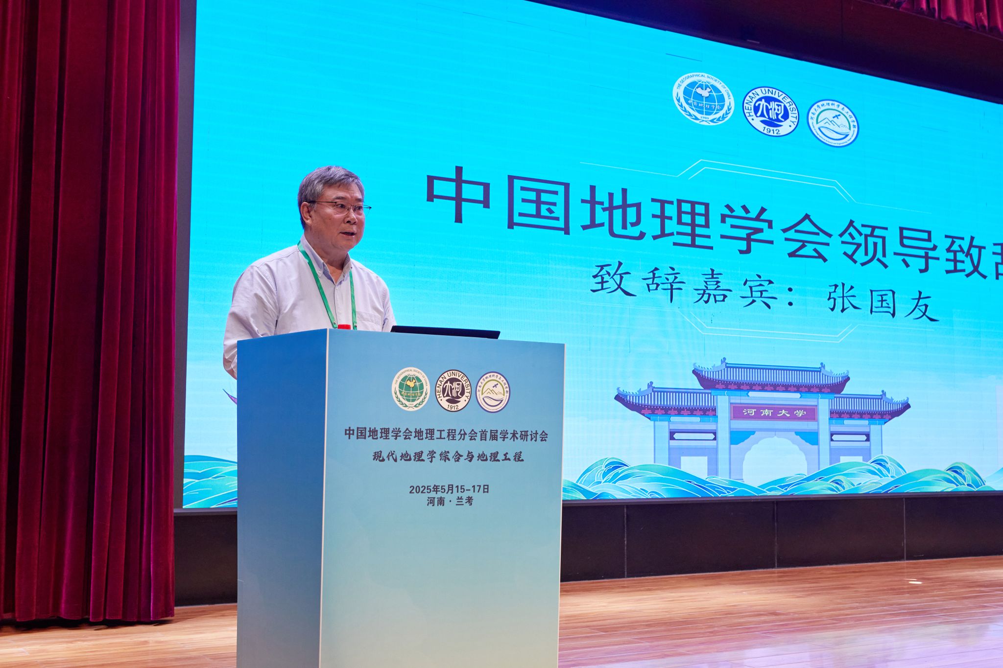 张国友向与会院士、专家学者及承办方表达诚挚谢意,并阐释地理工程是连接地理科学发展与产业技术创新的关键纽带,为地理学服务新质生产力发展开辟了新路径。成立中国地理学会地理工程分会,旨在凝聚科技力量推动学科系统化、科学化发展,深度融入全球科技革命浪潮。他指出,要聚焦基础理论与原创技术攻关,强化国家战略决策服务能力;构建国际国内学术共同体,深化多维度交流合作;践行“人与自然和谐共生”理念,赋能区域高质量发展。他进一步强调,兰考作为焦裕禄精神的发源地,承载着科技服务民生的重要象征意义,会议将助力地理工程学科建设,为黄河流域生态保护和高质量发展、兰考产业升级等提供科技支撑。最后呼吁学界以本次会议为契机,创新推动地理科学工程化、地理工程学科化研究,共同书写地理工程服务现代化建设的新篇章。