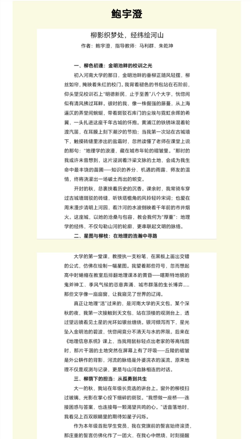 为进一步扩大宣传效果,增强活动互动性,学院于4月15日至4月17日通过“地理科学与工程学部”微信公众号对征集到的作品进行了线上展示投票。一篇篇真实感人的文字传递着受助学生积极向上的成长力量,也让更多人感受到“资助育人”政策背后的温度与关怀。