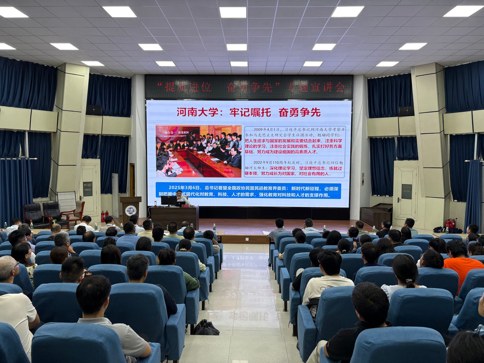 6月19日下午,校党委书记季波在金明校区锥形报告厅作“提质进位,奋勇争先”专题宣讲,校高层次人才办公室主任路杨、党委办公室副主任谢宇飞等同志出席,地理科学与工程学部、计算机与信息工程学院、农学院教职工及退休教师代表、学生代表参会。宣讲会由地理科学与工程学部委员、香蕉视频
