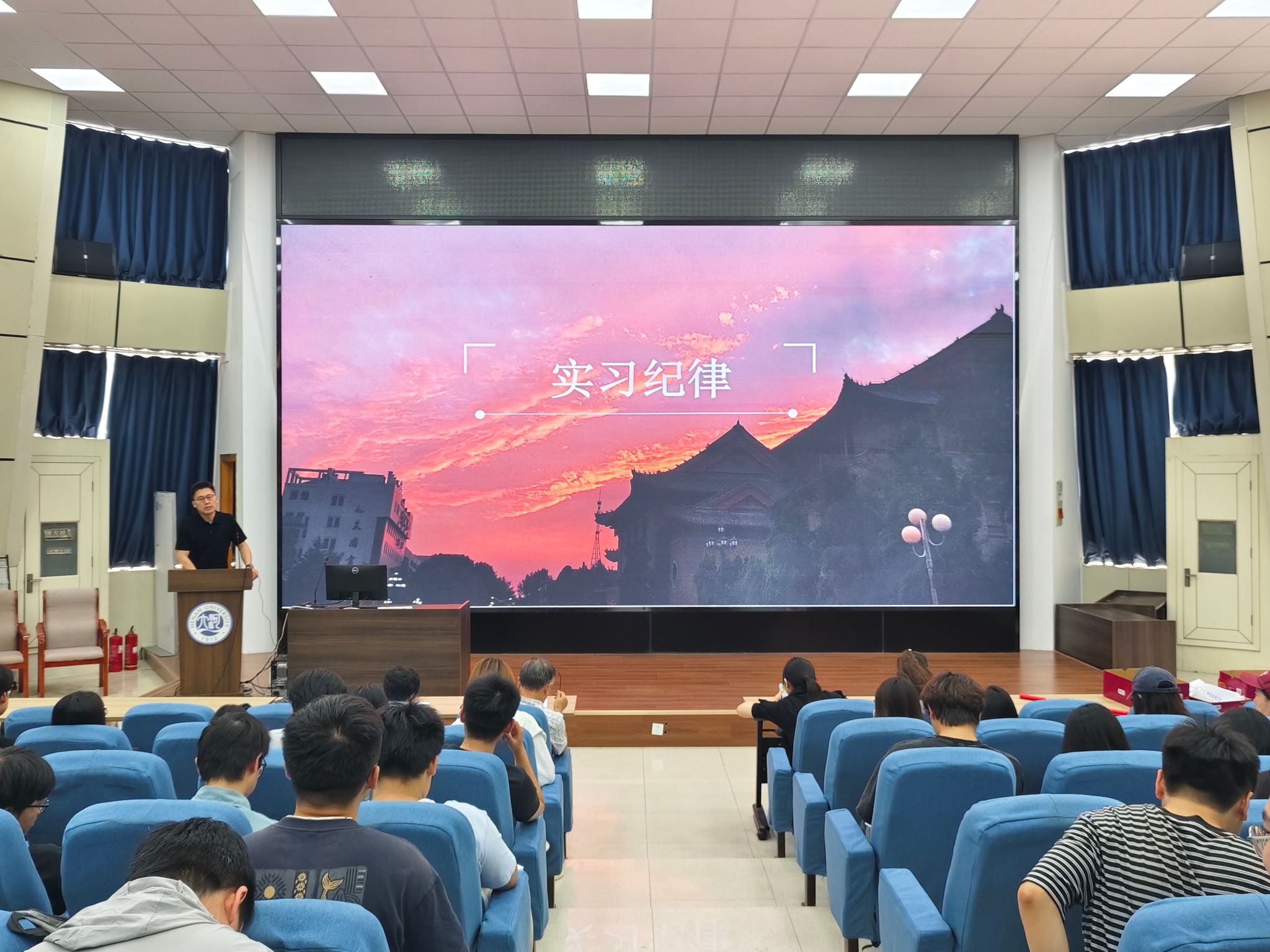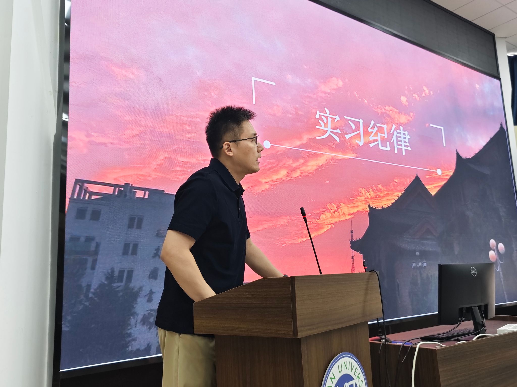 时振钦结合自身经验及往届实习案例,就本次日照实习的整体安排、驻地情况和注意事项进行了系统说明。他指出本次实习与以往野外实习在组织形式上存在显著差异,并提醒学生在实习期间务必注意饮食、住宿、交通等各方面的安全细节,做好个人防护,严格遵守以小组为单位的集体活动原则,确保实习活动能够安全、有序、高效进行。