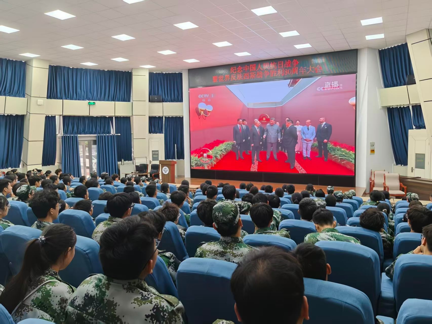 组织2025级全体本科新生于金明校区景兰报告厅观看九三阅兵仪式直播,共同见证这一承载着民族记忆与时代强音的庄严盛典。