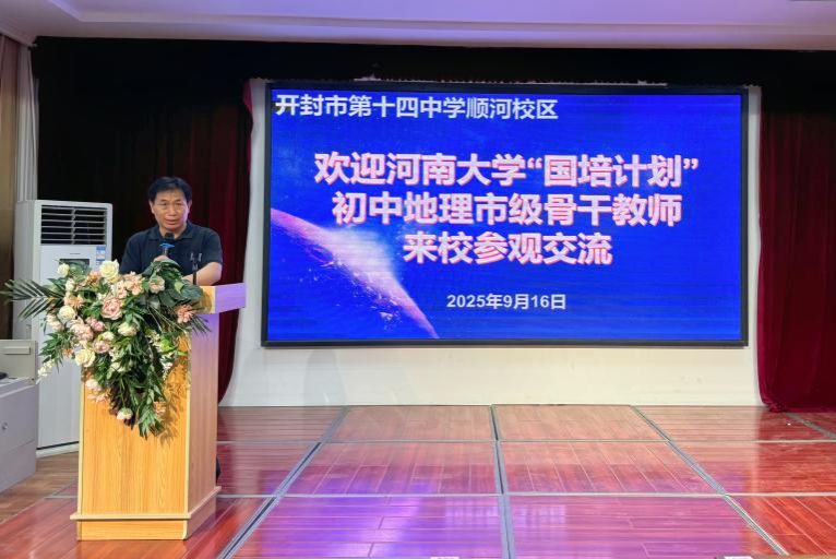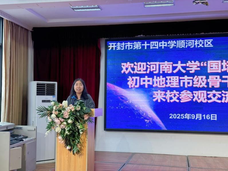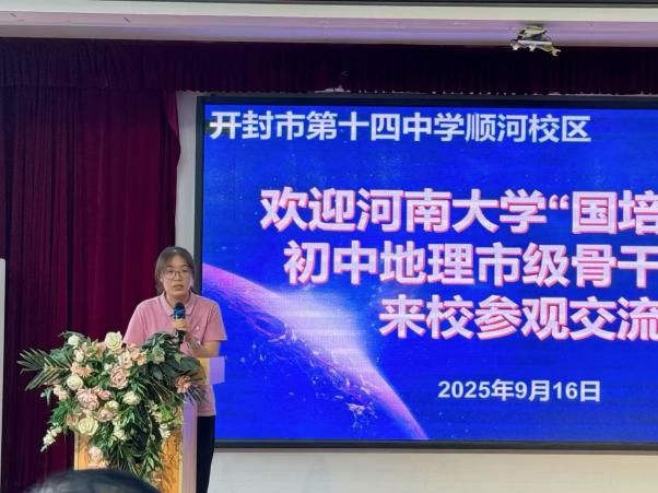 学科教育硕士生导师刘桂芳教授带领“国培计划(2025)”——市级骨干教师能力提升项目(初中地理)培训班的全体学员,来到开封市十四中顺河校区进行同课异构教学交流。