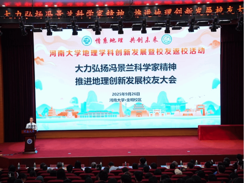 地理学人“守正创新、追求卓越”的学术品质与科学精神。他指出,近年来学校紧抓国家双一流建设、河南高校“双航母”建设叠加的重大历史机遇,围绕强理振文、新工新医的发展主线,努力争做国家事、入国家队,地理学科是我校的“1+5”筑峰学科之一,学校对地理学科寄予厚望。他提到,地理科学与工程学部成立以来通过规划建设景兰苑,创设景兰报告厅、景兰论坛等系列措施,弘扬冯景兰先生等老一辈科学家的精神,厚植家国情怀;并通过强化学科交叉,推进有序的科研,在回应中国式现代化建设实践中持续提升地理学科的核心竞争力和社会贡献力。他呼吁校友持续关注学科发展,在人才培养、科研合作等领域深化与母校的联系,共同推动我校学科核心竞争力提升和地理学科创新发展,为我校建设研究型、综合性、国际化、世界一流大学作出新的贡献。最后,他预祝本次大会圆满成功,祝愿香蕉视频
