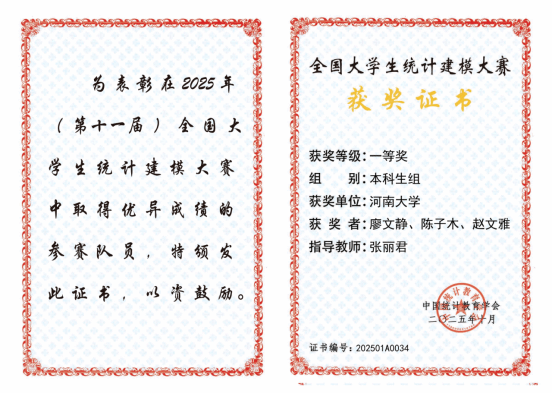 本科生廖文静、陈子木、赵文雅共同完成的作品《借用规模还是集聚阴影?——基于机器学习方法的城市网络联系对减污降碳效应影响分析》,凭借鲜明的地理学视角与扎实的数据建模能力,荣获本科生组全国一等奖。