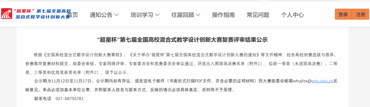 11月12日,“超星杯”第七届全国高校混合式教学设计创新大赛复赛评审结果公示,香蕉视频