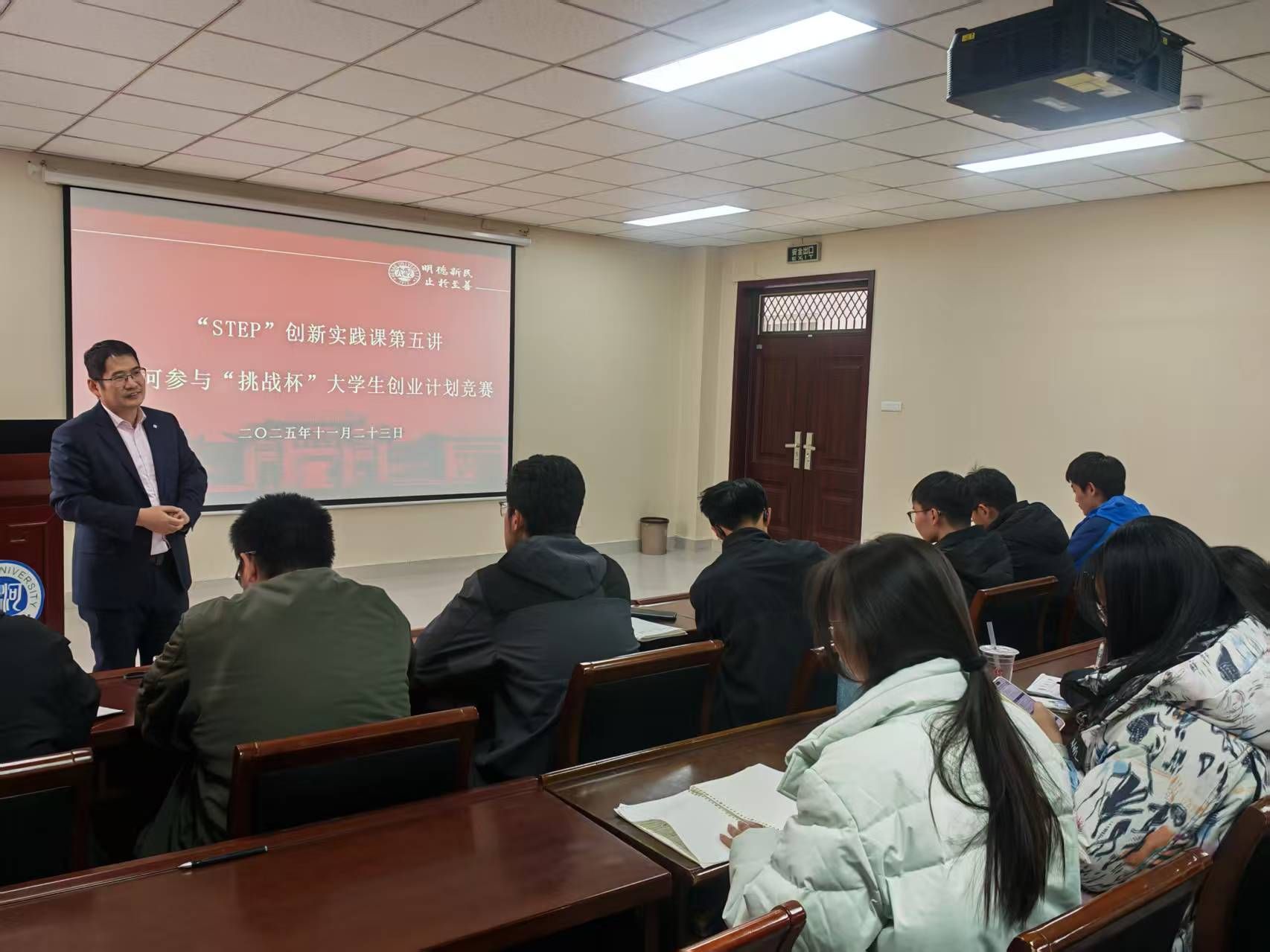 11月23日12时30分至13时30分,第五讲聚焦“如何参与‘挑战杯’创业计划大赛”,丁志伟从选题可行性、执行可信度、写作规范度及活动展演性四大关键维度,为学子们提供全流程竞赛解答。他建议学生提前谋划,立足专业领域选择窄而深的技术性选题,为项目实施筑牢科学基础;鼓励通过申报专利、开发软件等方式深度参与项目,强化技术支撑;强调申报书撰写需在导师指导下逐句打磨,加强科学性与规范性训练,形成系统完整的竞赛材料;同时提醒学生强化责任意识与汇报重视程度,让项目在规范度、设计感与展演性上契合挑战杯的内在要求。