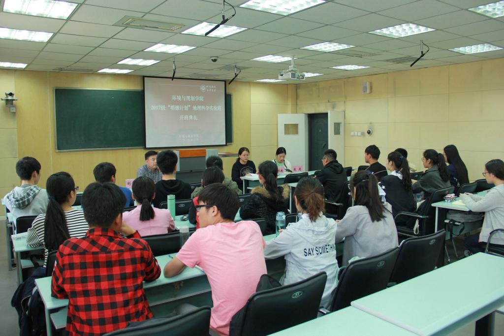 德育为先,立德树人。3月29日中午,2017级地理科学实验班开班典礼在我院502教室成功举办。我院党委副书记刘会军、副院长翟秋敏、2017级辅导员赵越出席本次开班仪式。