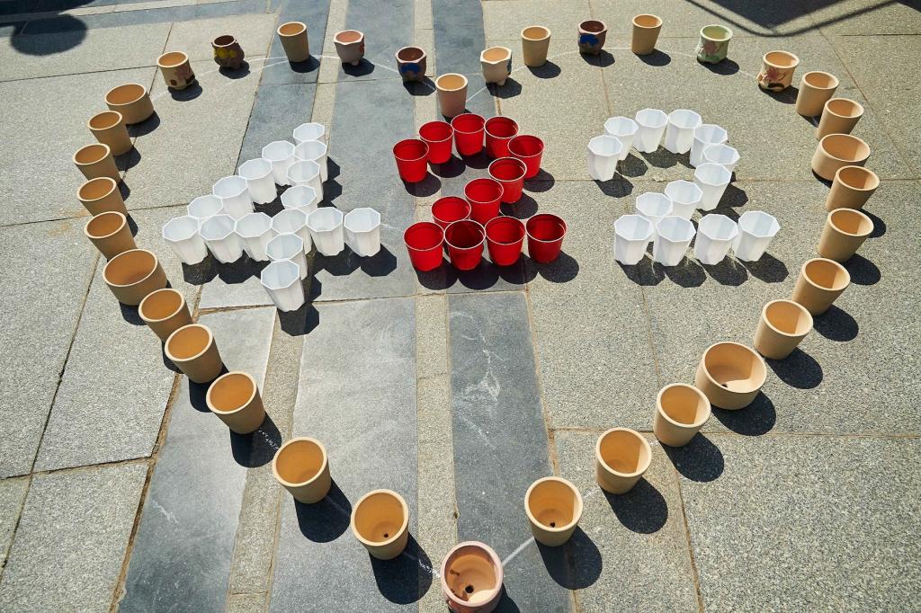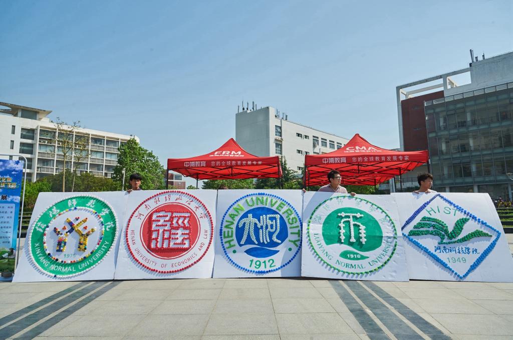 金明校区马可广场,一张拼图在广场中央华丽“绽放”,162名学生利用手中的画板,组成了大型手绘地球拼图。河大学子齐聚于此,手握成拳,目光坚定。