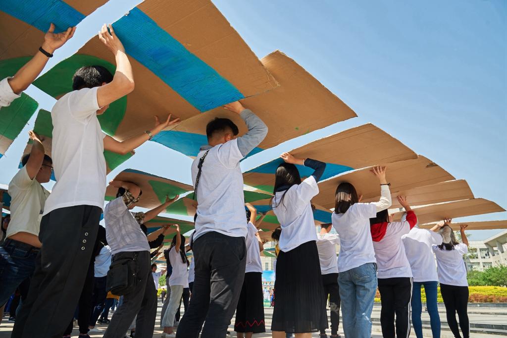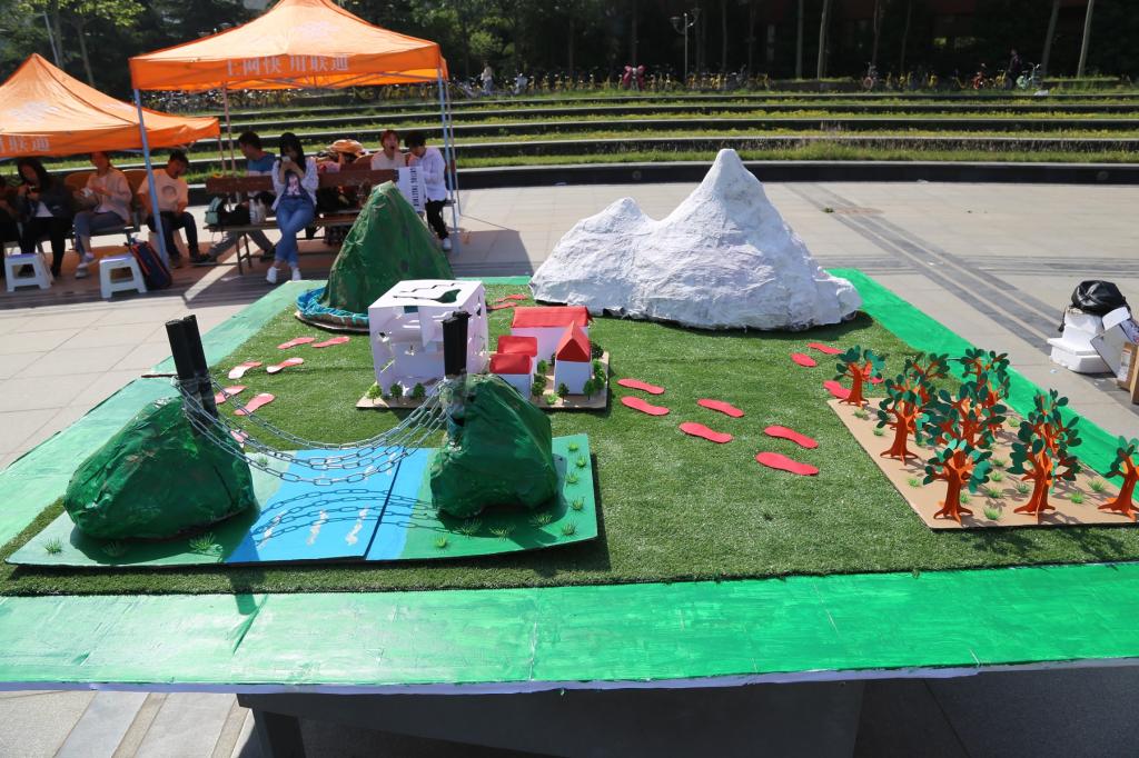 环保时装秀、人体彩绘展、垃圾分类守则等活动满满真诚、不走“套路”。各类废旧衣服、塑料瓶等纷纷变身DIY原料,为蔚蓝天空“摇旗呐喊”。“港珠澳”大桥模型展、动植物标本展、空气瓶展示,通过对世界地球日的介绍以及我国当前生态状况的展示,呼吁大家努力践行地球日主题,从自身做起,“珍惜地球资源”,“共同维护自然生态空间”。“环保长征路”活动以红军长征途中重要事迹为切入点,将之与环保联系在一起,设置成环境受到污染的场景,强调了环保之路,路漫漫其修远兮,吾将上下而求索。引起师生对自我环保行为的反思,告诫大家建设美好家园是我们人类共同的责任