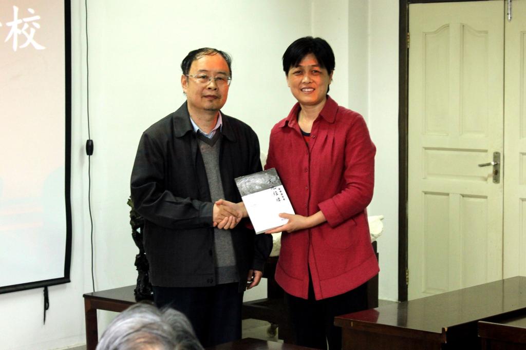 随后,77级校友向学院东英自然博物馆捐赠了墨晶和砗磲岩石标本,学院党委书记闫峻代表学院表达感谢。她指出,四十多年来,77级校友创造的历史、成就的辉煌是不平凡的,捐赠的两块“美玉”是对学院未来发展的期许和支持,也是77级校友在学校里美好的历史记忆,把根留在了河大,学院和校友们将永远血脉相连:正是河大美风景,繁花时节又逢君;依稀风华一少年,青春依旧好时光!