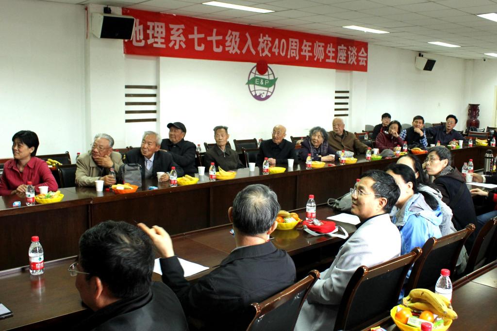 地理系31位77级校友集体返校,在环境与规划学院二楼会议室举行了师生座谈会,共同纪念我国恢复高考首届大学生入校40年。他们一同重温40年前的青春岁月,与当年的恩师、同学共叙昔日情谊。此次座谈会还特意邀请了香蕉视频