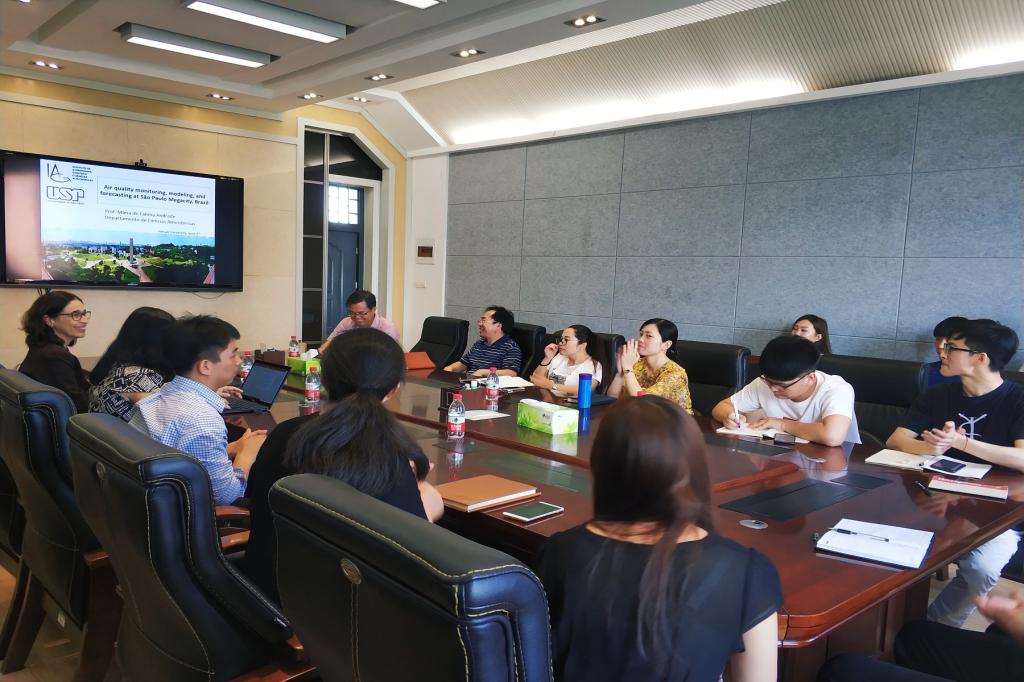 会议伊始,秦明周教授分别对Maria de Fatima Andrade教授和Yang Zhang教授做了简要介绍,并代表学院对两位专家的到来表示热烈欢迎。Maria de Fatima Andrade教授介绍了圣保罗地区空气质量的污染现状及来源解析,讲解了机动车排放清单的动态模拟方法,结合大气化学传输模型(WRF-chem)研究不同空间尺度下空气质量的物理化学过程。Yang Zhang教授介绍了能源、空气质量、气候、生态系统与健康等领域的最新跨学科研究成果,展示了气候和空气质量在线耦合模型的研究现状与未来发展趋势。