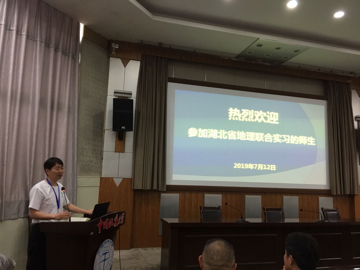 联合实习的开幕式于2019年7月12日在中国地质大学(武汉)举行。会议由中国地质大学地理与信息工程学院党委书记许德华主持,中国地质大学(武汉)副校长赖旭龙教授致欢迎词。开幕式中,李长安教授介绍到本次实习以“地理科学与国家需求”为主题,充分围绕湖北省地质地貌特色、三峡水利工程、长江经济带和长江大保护等地理特色展开考察。我院乔家君常务副院长针对我院地理学科的发展特色、学科建设以及未来前景等做了介绍,并预祝本届地理联合实习顺利开展。
