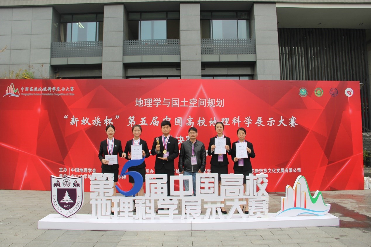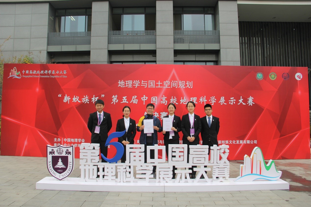 2019年11月15—17日,由教育部高等学校地理科学类专业教学指导委员会、中国地理学会等共同主办的“新蚁族杯”第五届中国高校地理科学展示大赛总决赛在南京大学举行,环境与规划学院代表队代表我校参赛取得了人文地理组一等奖、自然地理组三等奖、最具学术性主题奖和优秀组织奖的好成绩。