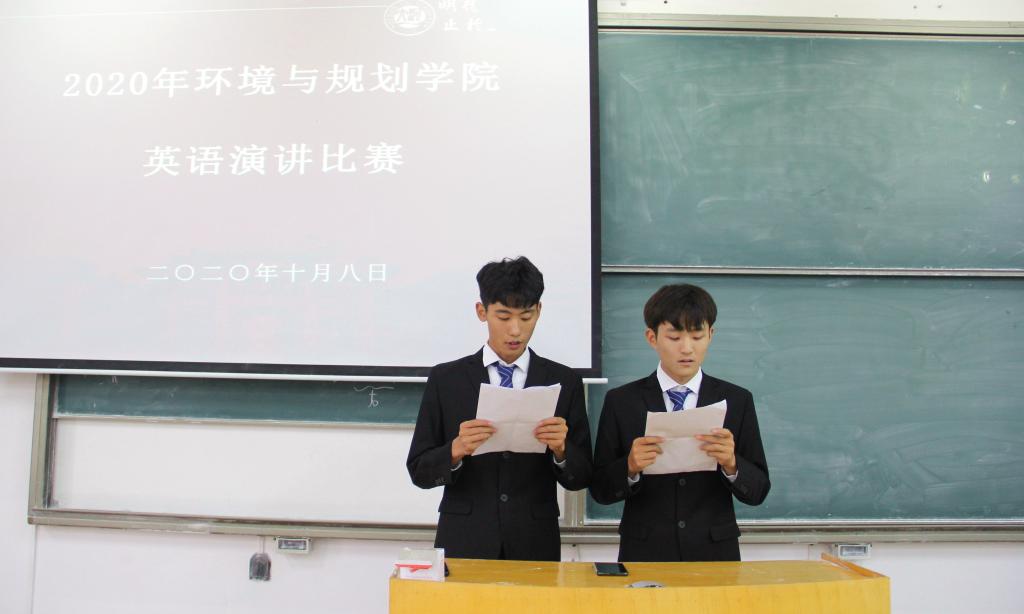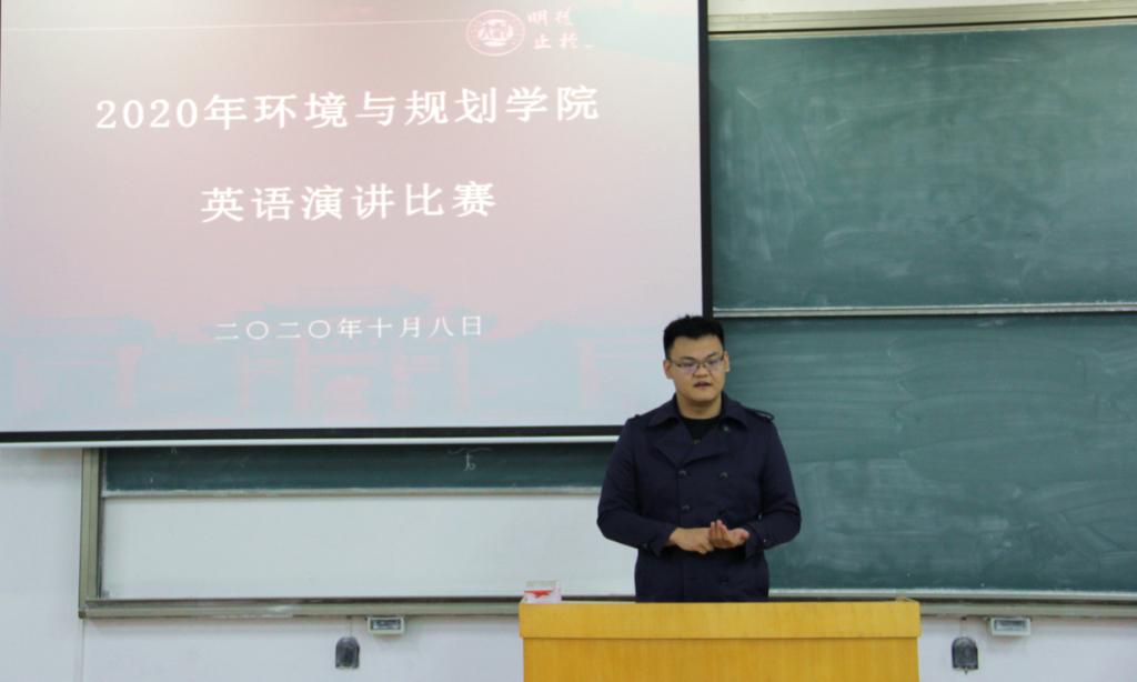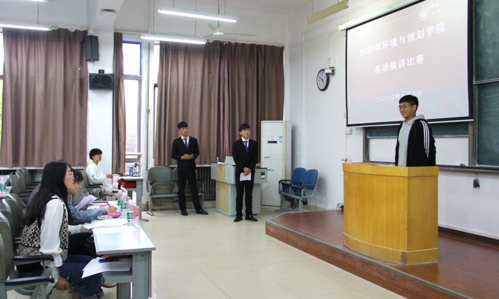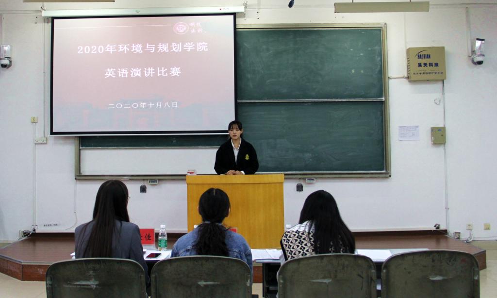 环境与规划学院2020年英语演讲比赛在金明校区综合教学楼2203教室举办。本次比赛由环境与规划学院主办,学院团委学生会承办,2020级学生杜启贤、江尚勋主持,学生代表何颖超、于艳可、王佳佳担任评委。