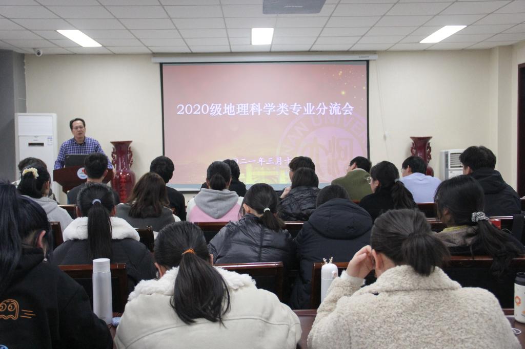 3月11日,2020级地理科学类专业分流会在学院二楼报告厅举行。分流会由2020级辅导员程亚楠主持,副院长赵威发表重要讲话。