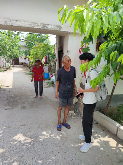 随后,团队成员在当地的党员活动室采访了村委会的工作人员,得知陈庄村曾经是一个村室破败落后、道路崎岖不平的贫困村。近年来,在村支部书记李爱玲同志等村干部的带领下,借助国家多项惠农政策和当地政府支持等,村民们团结一心,因地制宜,利用土地流转、集体蔬菜大棚、花生产业等方式实现了整体脱贫。村里从土路变成了水泥路,村容村貌、自来水、厕所和村民娱乐场所等基础设施有了很大的改善,村民的生活水平、获得感和满足感显著提升。在改善村民公共娱乐设施时,陈庄村创造性地采取了回收、改造空心院的办法,提高了土地的利用率。