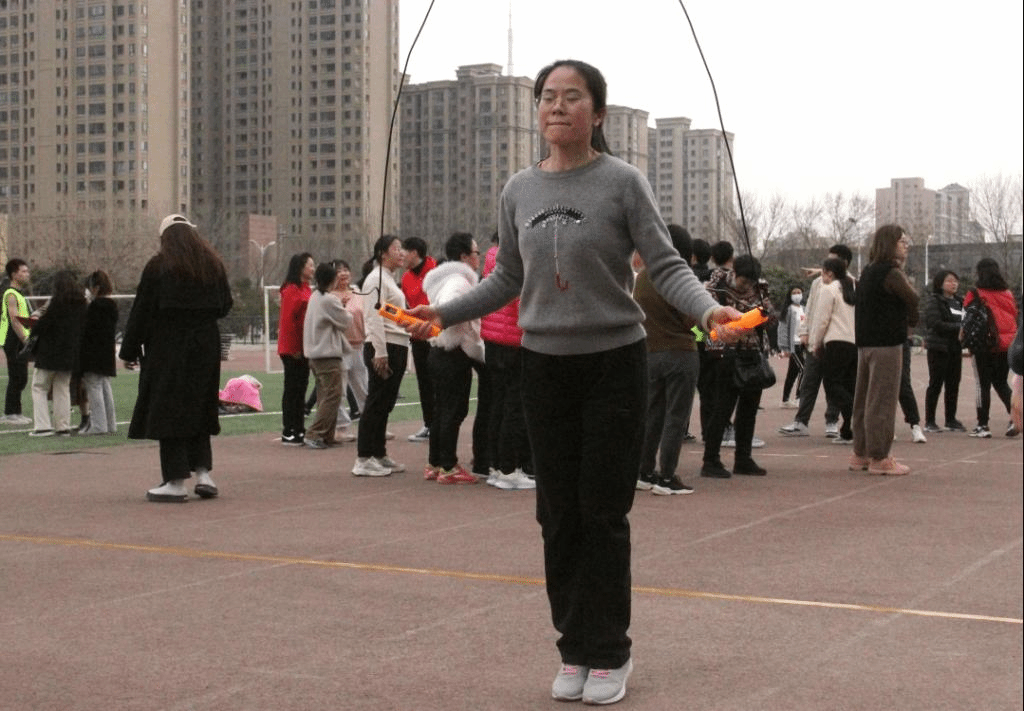 本次活动共涉及跳长绳集体项目以及跳绳、毽球、呼啦圈等个人项目。赛场上阳光明媚,我院女教职工首先进行热身活动,积极备战。“各就各位,预备、起。”在裁判长的发令声中,跳长绳比赛正式拉开序幕。我院老师们配合默契、动作敏捷,一条条甩动的长绳,一个个跃动的身影,一声声兴奋的欢呼,给春日的校园添加了一道靓丽的风景线。在个人跳绳、毽球、呼啦圈项目中,老师们一扫平日的安静,放松心情,轻盈跳跃,舞动跳绳,身手敏捷,活力四射!向我们展示出她们的风采,伴随着场上阵阵热烈的掌声、欢呼声和朗朗的笑声,比赛圆满落下帷幕。