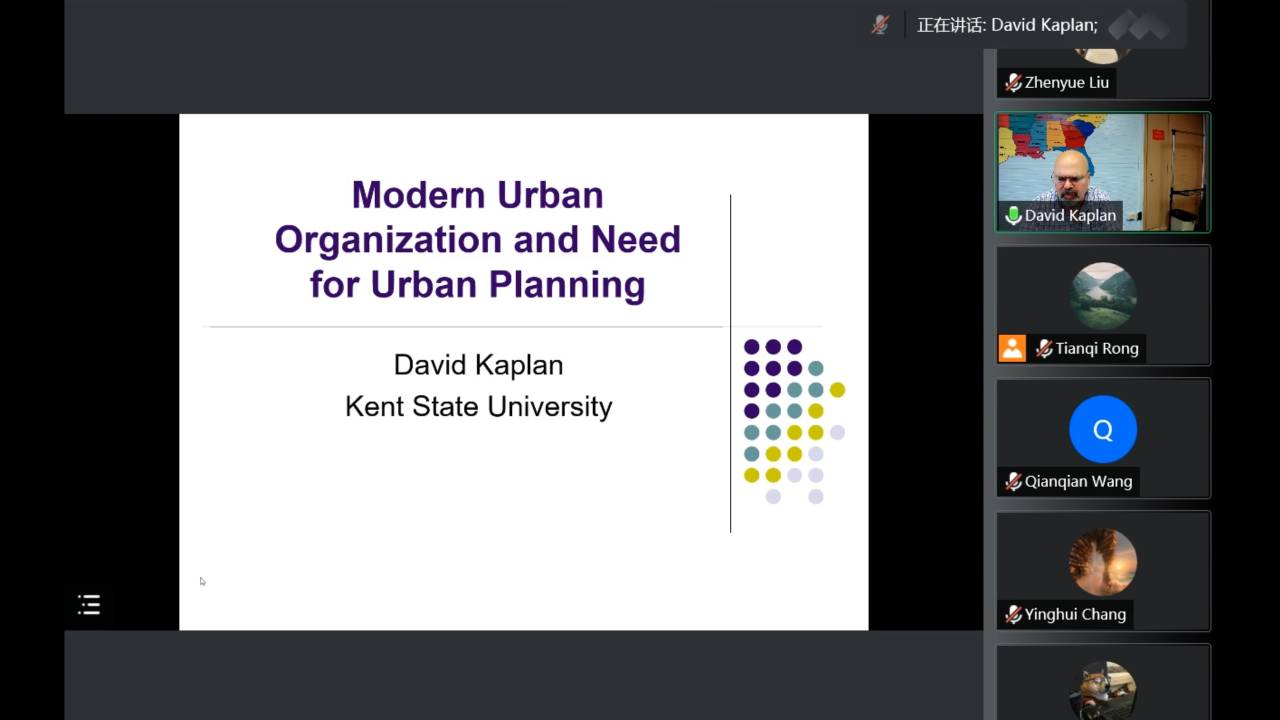 地理与环境学院河南省沿黄生态建设与乡村振兴研究引智基地暑期海外名师大讲坛活动成功举办。此次活动邀请美国肯特州立大学的David Kaplan教授作专题报告。本次报告通过Voov Meeting进行,报告主题为“Planning, Transportation and Urban Form”。