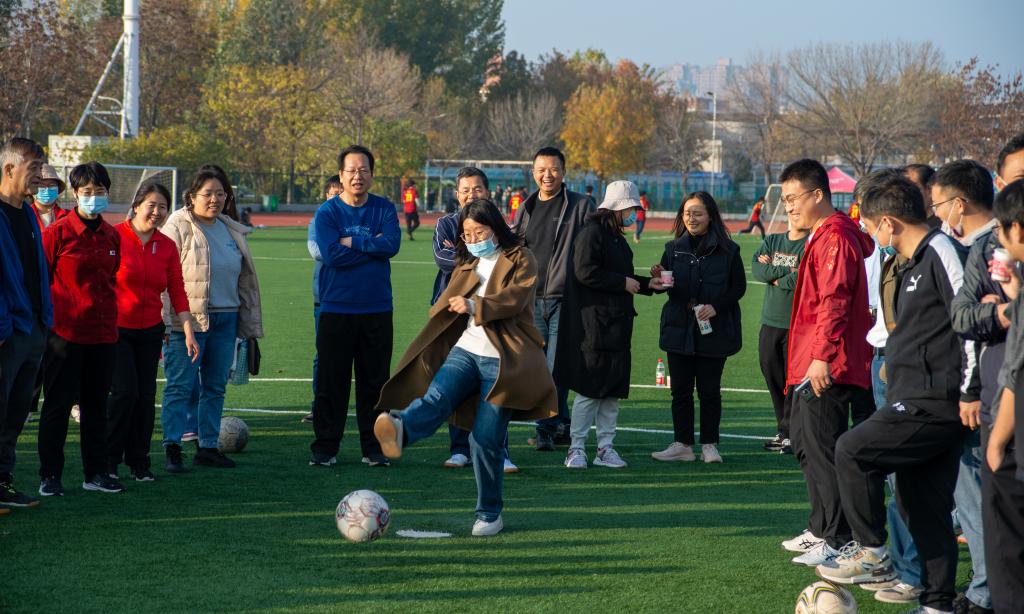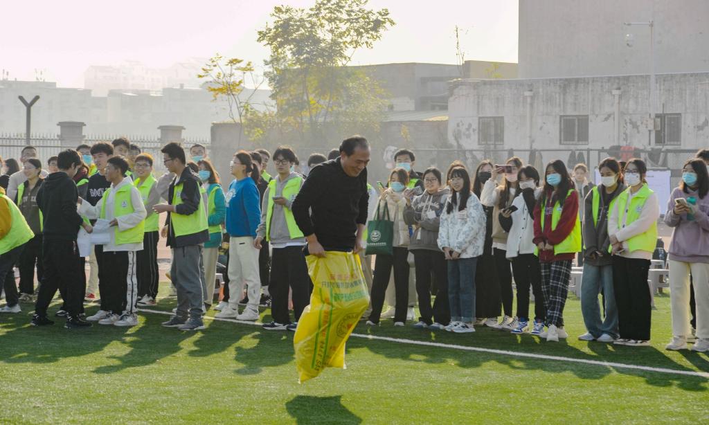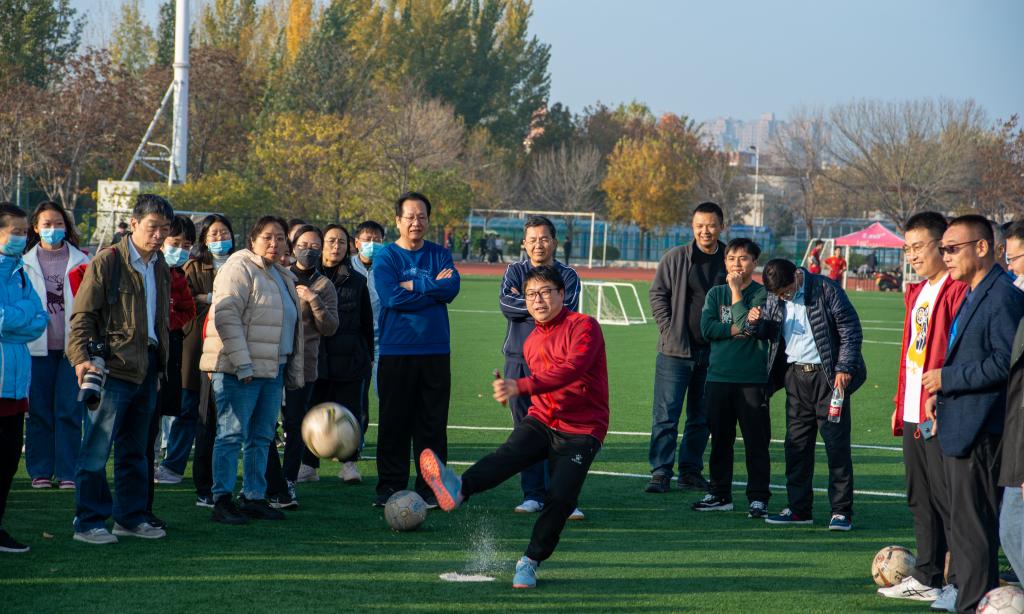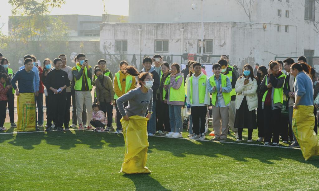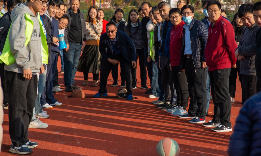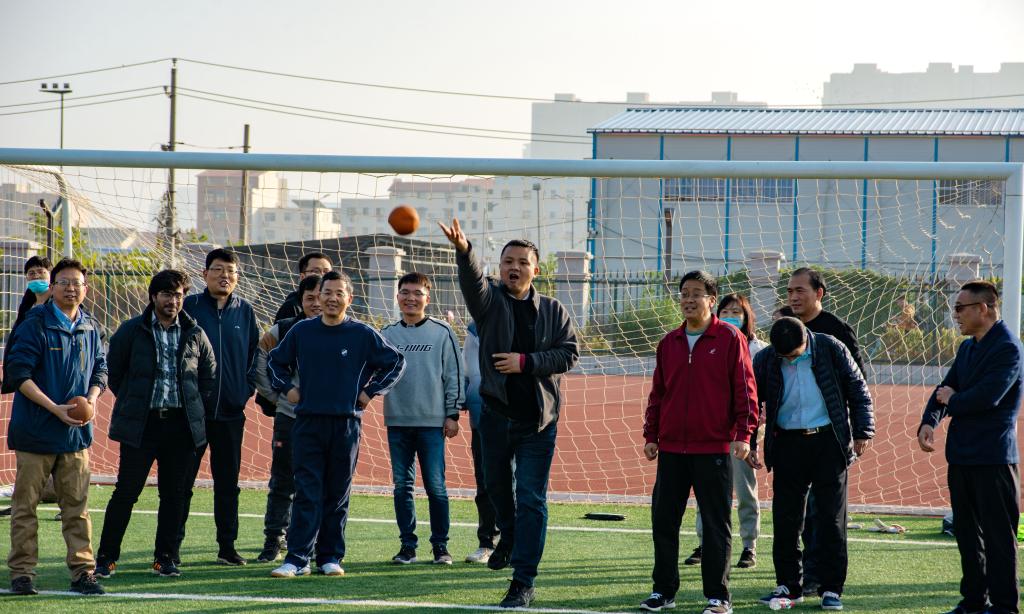 全体教师到场后,副院长、工会主席邱永宽作赛前讲话,他希望全体教职工都可以借此次机会展现出自己昂扬向上的精神风貌,赛出水平,赛出风格,在之后以更饱满的状态投入到工作中。活动在全体教师绕操场慢跑一圈后正式开始,共分为袋鼠跳接力、沙包背抛、趣味保龄球、点球大战四个项目。