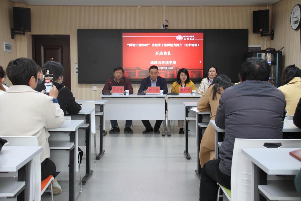 为促进教师的专业成长,充分领会2022版初中地理新课标精神,提高地理教师理论联系实际并提高教育教学的能力,3月19日上午,“国培计划 (2022)”——农村骨干教师能力提升培训项目——省级骨干教师能力提升(初中地理)培训班开班典礼在环境与规划国家级实验教学示范中心101教室召开。实施“国培计划”旨在发挥示范引领、“雪中送炭”和促进改革的作用。通过该计划培训一批“种子”教师,使他们在推进素质教育和教师培训方面发挥骨干示范作用。