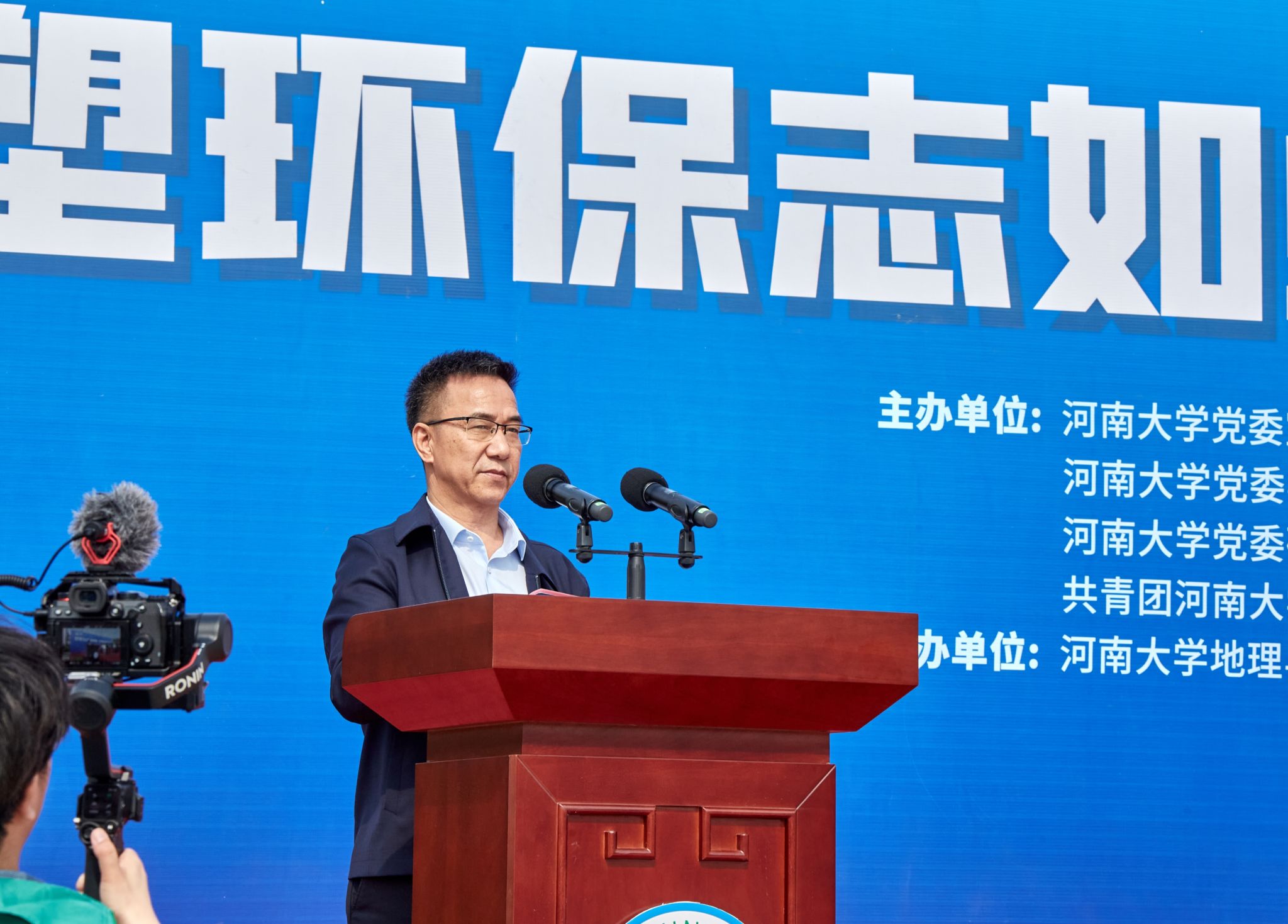 合作,通过主题活动加深大学生对塑料污染问题的认识,提升大家参与塑料减排相关活动的积极性,为共同为建设美丽中国、美丽河南而努力!乔家君在讲话中指出,学院将充分发挥学科优势,深刻挖掘生态文明内涵,将环境保护作为自己的责任和担当,为地球重现绿意盈然带头冲锋,共筑环保绿色征程。