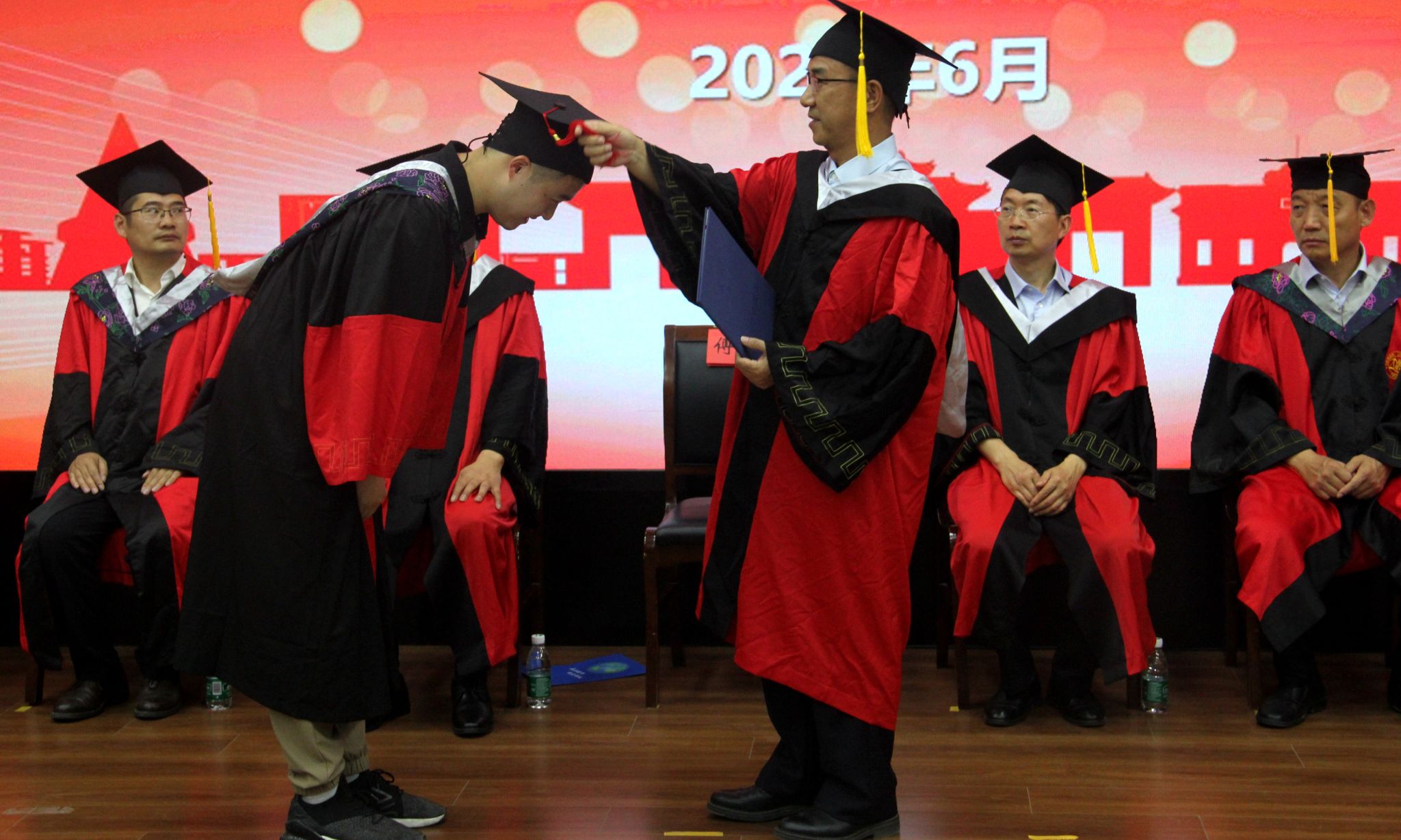 毕业典礼在庄严肃穆的国歌声中拉开序幕。