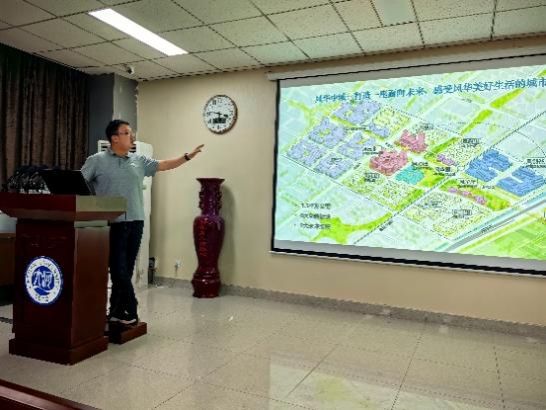 动员会之后,为了让学生们深入了解城乡规划的学科特质并体验规划编制实践,我院于地学楼二楼报告厅举办了为期一天半的城乡规划实践培训会。6月29日下午,姚飞老师以“地理学与国土空间规划”为题,结合规划案例讲述了国土空间规划的总体要求与编制内容;邓晴晴老师以“产业规划理念与实践”为题,讲解了产业布局的基本原理、影响要素与优化路径。6月30日上午,杨阳老师以“经济地理实践思维与城市规划理念”为题,讲述了经济地理学中区位分析的方法论及其在城市规划方面的应用实践;朱乾坤老师从野外实地调查经验着手,结合具体的实践经历,从思想建设、实习内容、资料搜集、工具准备等方面对本次的实习工作进行了指导。6月30日下午,河南省城乡规划设计研究总院注册城乡规划师、高级工程师吕彦柯分别以“刚弹结合,面向实施—如何编制乡镇国土空间总体规划” “问题导向 引领建设——实施型城市设计‘道与术’”为题,为同学们传授了编制乡镇国土空间总体规划和城市设计的实践经验与案例。