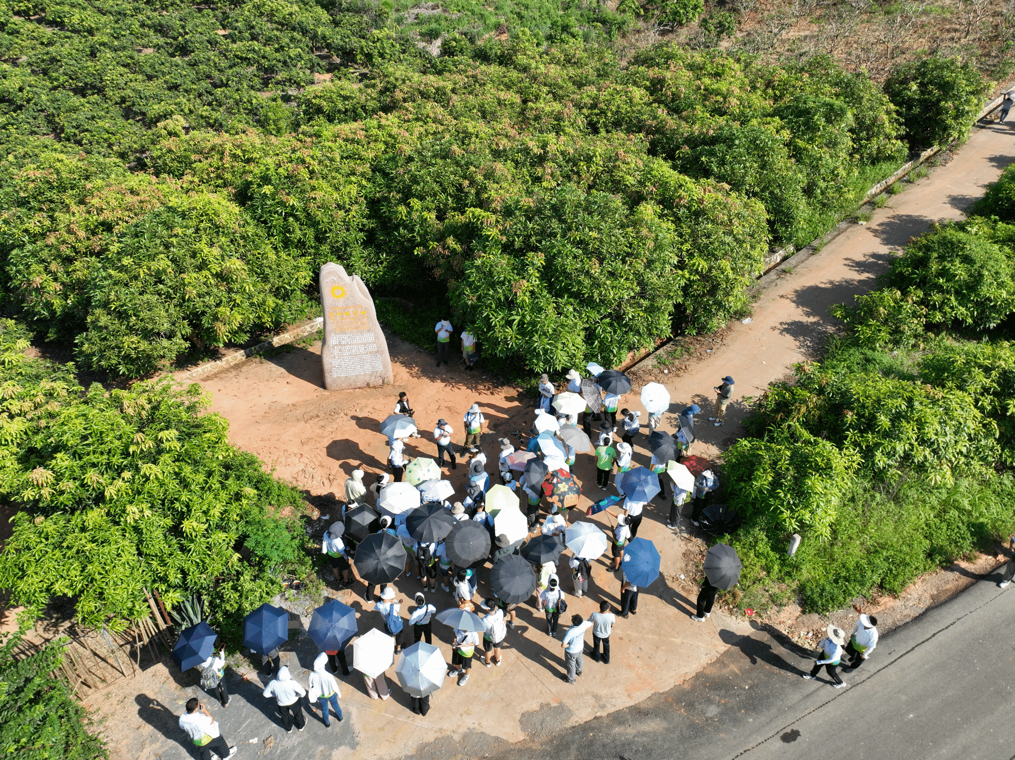 实习队伍转战全国重点文物保护单位-田东高岭坡旧石器考古遗址,与古人类进行了一场穿越80万年时光的对话。讲解员介绍到:在过去的几十年中,百色盆地共发现旧石器遗址达上百处,而田东的高岭坡遗址是其中发现较早、考古工作和研究最多、学术意义重大的遗址。2000年3月,中美科学家关于白色旧石器的研究报告发表在美国《科学》杂志上,这项成果证明了亚洲早期人类制作工具的能力与非洲同期相当,打破了统治半个世纪的“莫氏线”理论,证明东方的早期人类和西方的早期人类在体能和文化上并无本质差别。