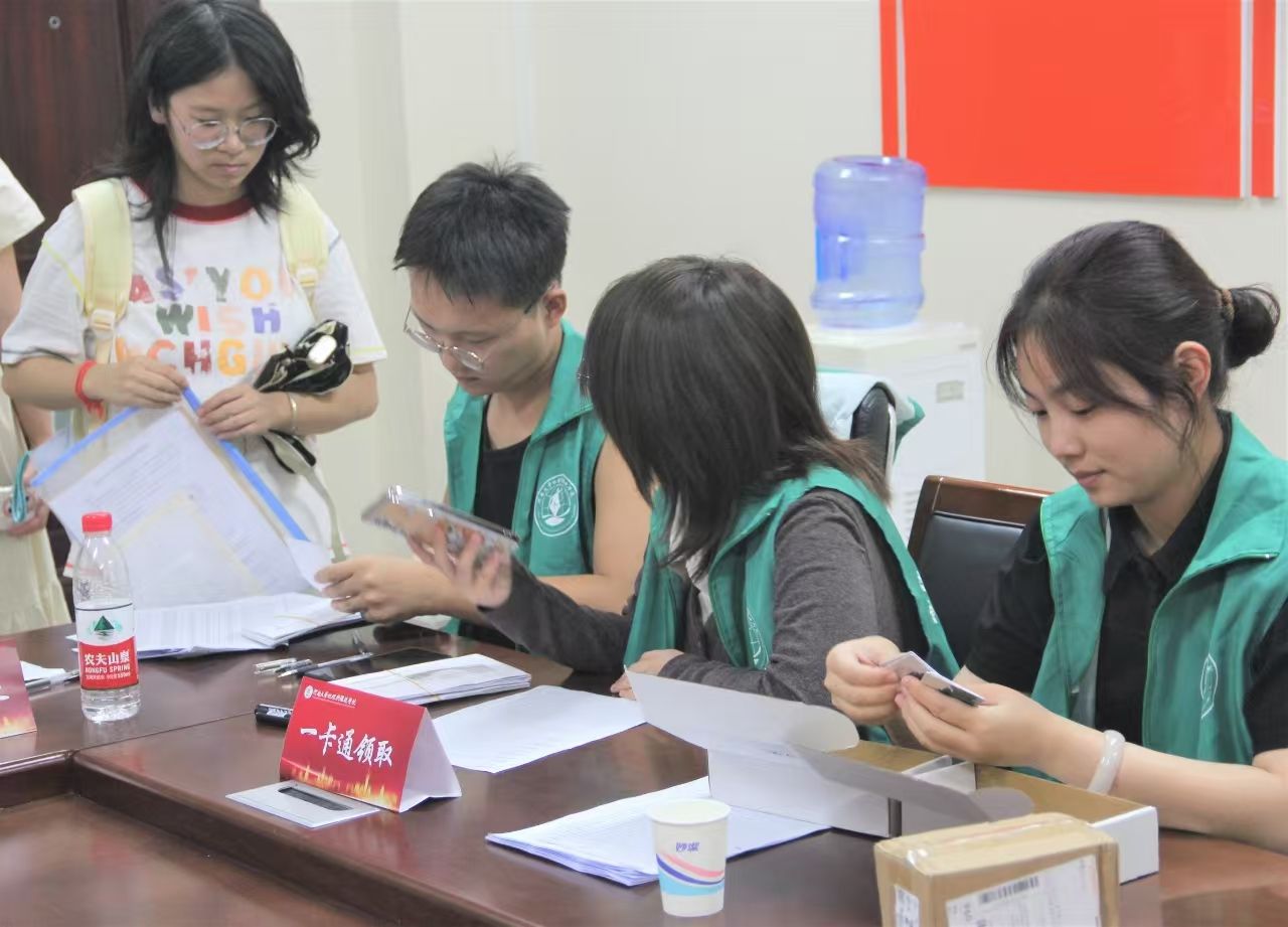 与此同时,为帮助我院新生顺利入住宿舍,学院迎新工作组在金明校区东苑学生公寓和南苑学生公寓分别设置了迎新服务站点。志愿者们热情洋溢,引导新生办理宿舍入住,帮助新生搬运行李。暑热未消,骄阳仍烈,却没有减弱志愿者们的热情与耐心,他们积极弘扬助人精神,用实际行动向新生和家长展示学院形象,彰显地环风采。