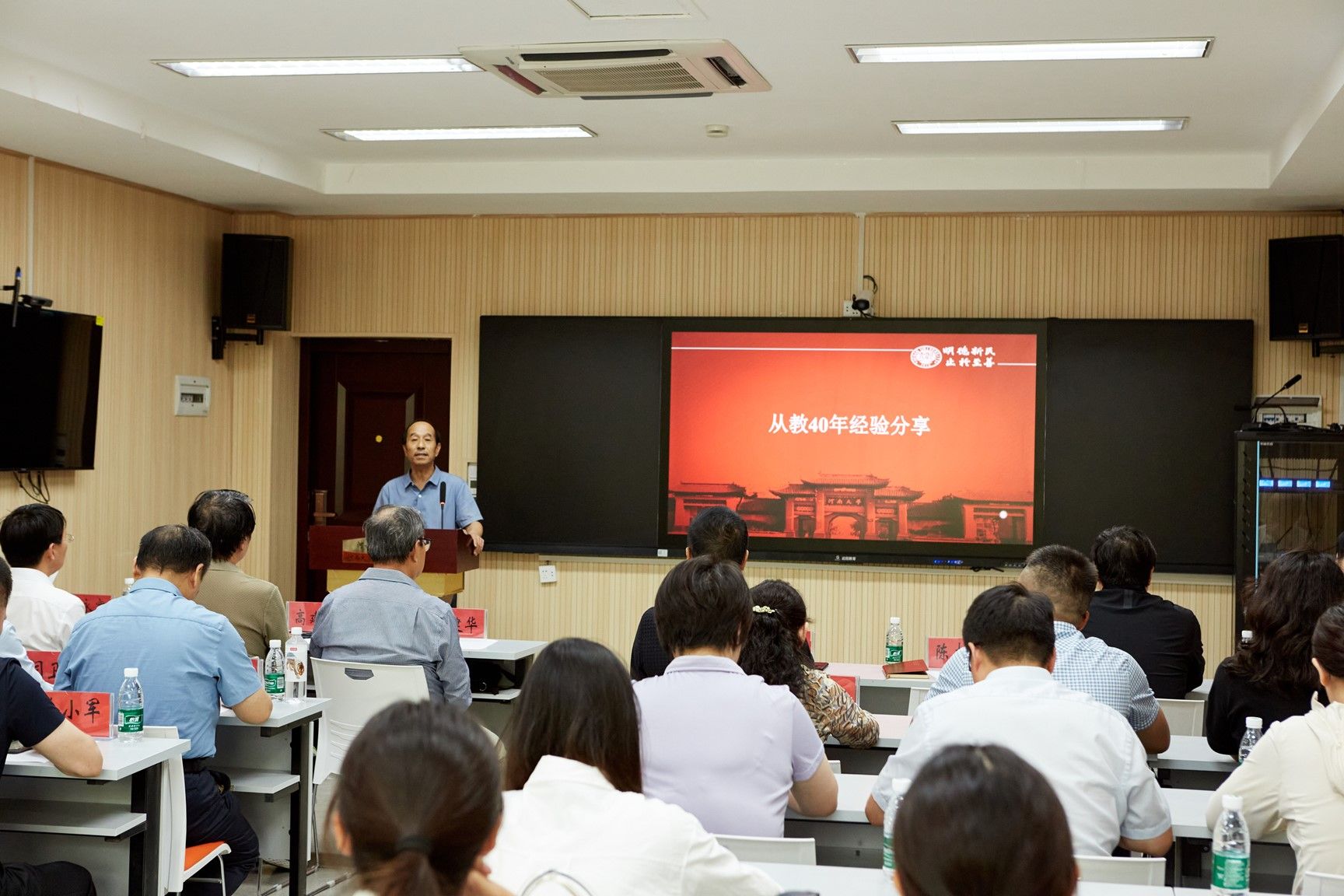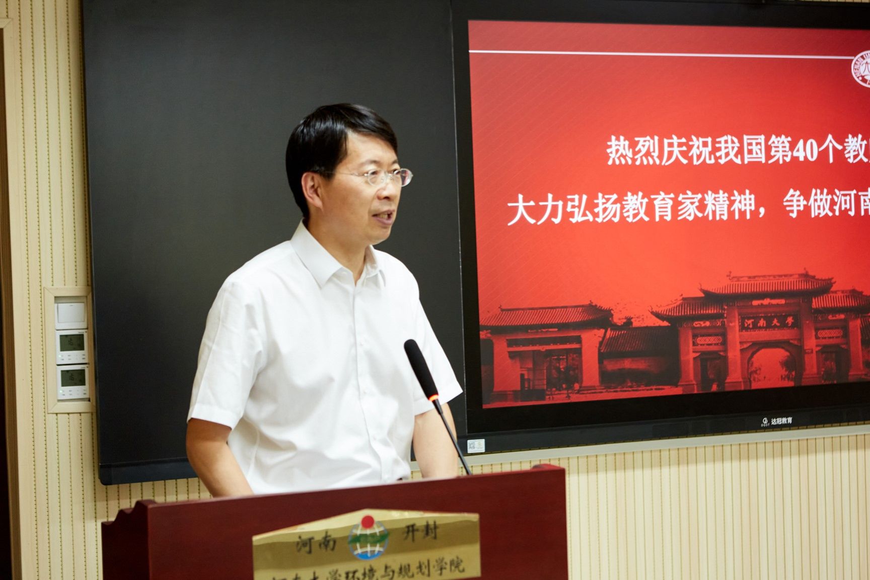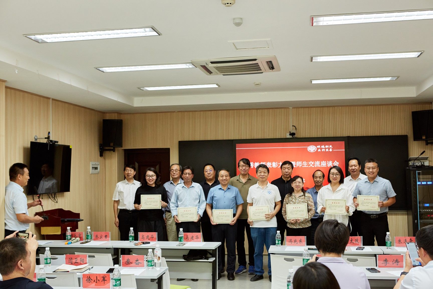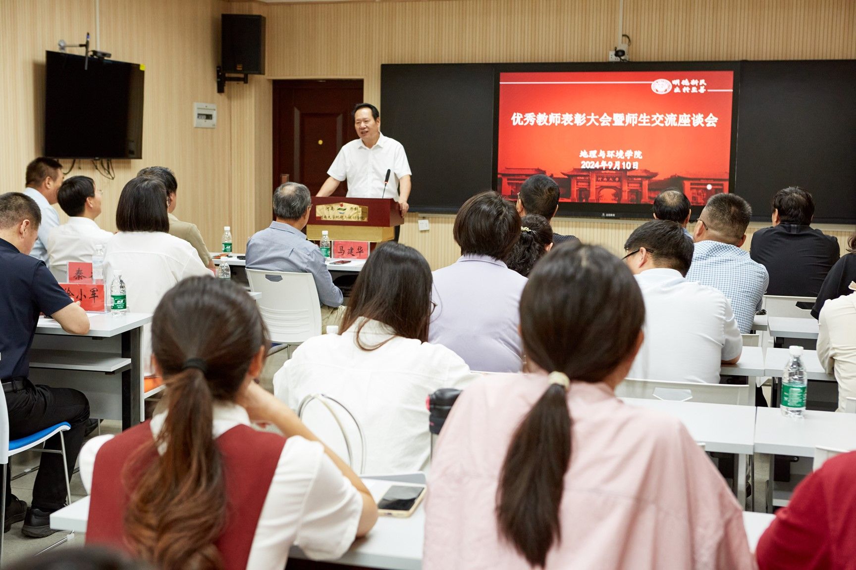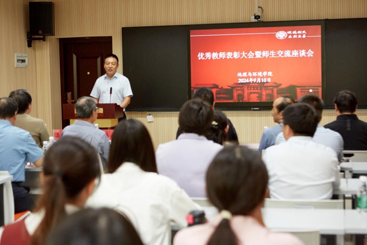 为进一步展现地理与环境学院教师立德树人、自信自强的精神面貌,弘扬优良师德传统,形成尊师重教的良好氛围,在我国第40个教师节来临之际,9月10日下午,地理与环境学院在环境与规划国家级实验教学示范中心101教室举办2024年度优秀教师表彰大会暨师生交流座谈会,交流从教心得,共话学院发展。学院领导班子成员、资深教师代表、学院2024年度优秀教师代表和学生代表参加。会议由学院副院长邱永宽主持。