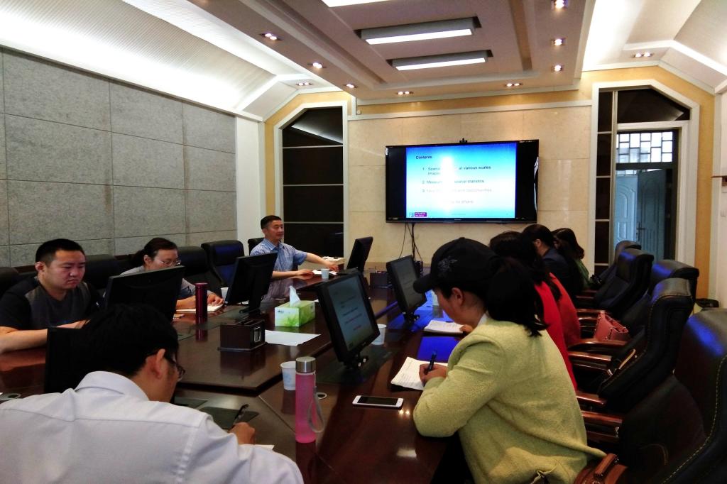张朝生教授首先介绍了地理数据的表达方式,特别是传统的统计方式引出报告内容。他讲到,环境监测的手段越来越先进,获取的数据越来越多,并且有一些免费的数据可以分析,这是时代带给我们的机遇;由于数据量变化,传统的统计方法往往与之不适应,不能完成统计分析,这是带给我们的挑战。针对时代带来的问题和挑战,张朝生教授结合自身研究给予诠释。随后,现场师生就报告会中的疑点、重点问题与张朝生教授进行了交流。