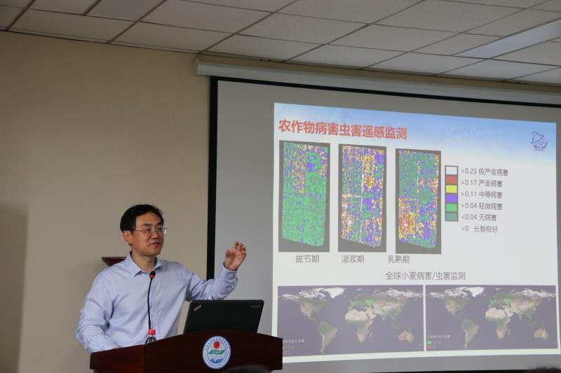 首先,张兵研究员向与会者简单介绍了本次报告的主要内容,随后他分别就高光普遥感发展概述、高光谱遥感成像技术、高光谱遥感图像处理分析以及高光普遥感的多领域应用等方面作了详细报告。他强调高光谱遥感是当前遥感科技发展的一个前沿领域,以若干实例详细介绍了高光谱遥感在精准农业、矿产调查、环境监测、目标探测等领域的典型应用,并对于国际遥感科技发展前沿方向做了展望。最后,张兵热情地与师生们进行了讨论交流。