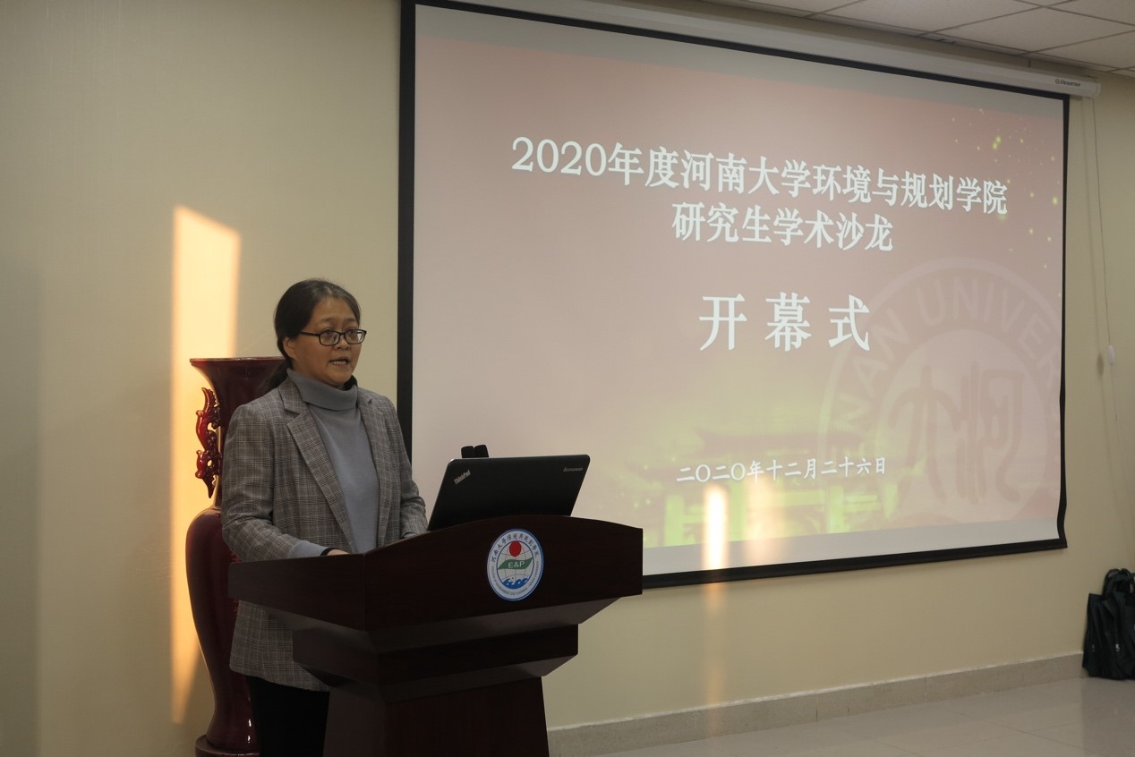 环境与规划学院副院长翟秋敏教授代表学院致辞,国家杰青、长江学者特聘教授冯兆东,省特聘教授孔云峰、卢鹤立,以及优秀青年学者白秀玲教授、崔耀平教授和张丽君副教授出席了开幕式并担任本次学术沙龙评委。翟秋敏副院长介绍了本次学术沙龙的筹办目的、过程,她指出长期以来学院有很好的学术交流传统,学院的人文地理专业研究生学术沙龙已经举办了10余年。本次沙龙是继冯兆东老师倡导筹办的“人类系统与自然系统耦合过程”青年学者学术沙龙之后,学院旨在 “把年轻人的积极性调动起来,把青年学者培养出来”的系列活动之一。翟院长对出席本次学术沙龙的六位评委专家、全程参与活动的宋宏权老师和学院研究生管理办公室黄永涛博士以及学院研究生会表示感谢。最后提出两点期望:1.希望通过学术沙龙营造出更加良好的学习及研究氛围。2.希望通过学术沙龙培养出一支优秀的学术报告团队和一支优秀的组织管理团队。