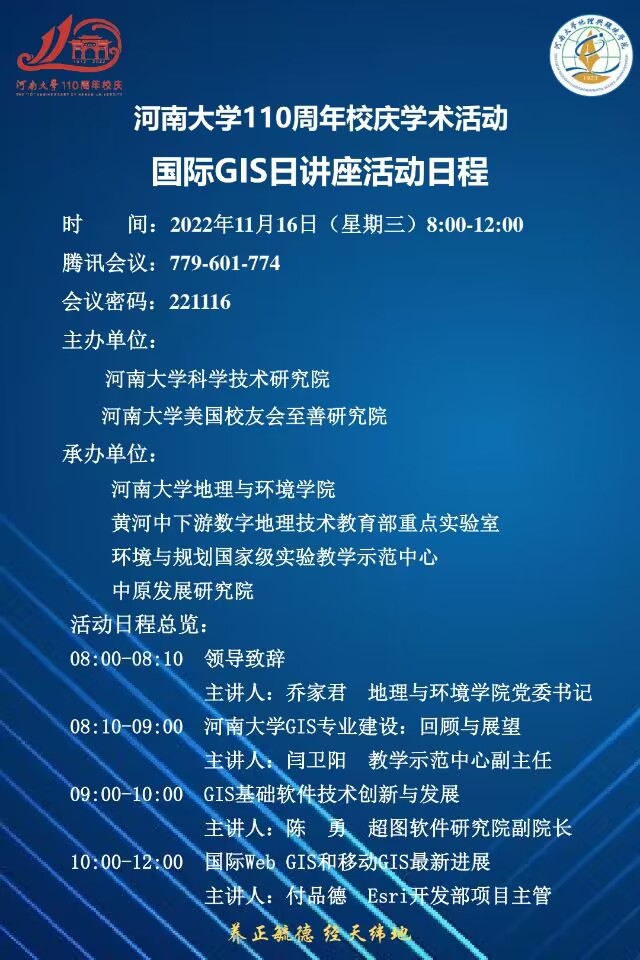 香蕉视频 110周年校庆学术活动:国际GIS日讲座活动日程