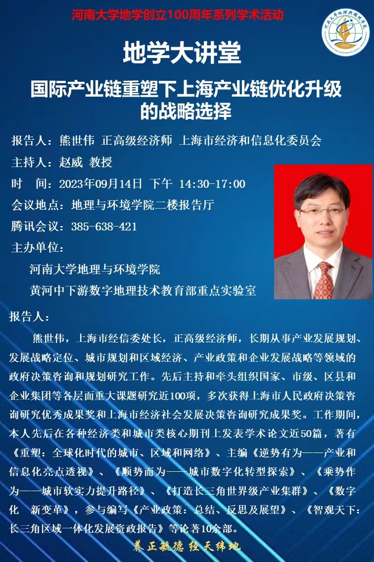 地学大讲堂 | 国际产业链重塑下上海产业链优化升级的战略选择