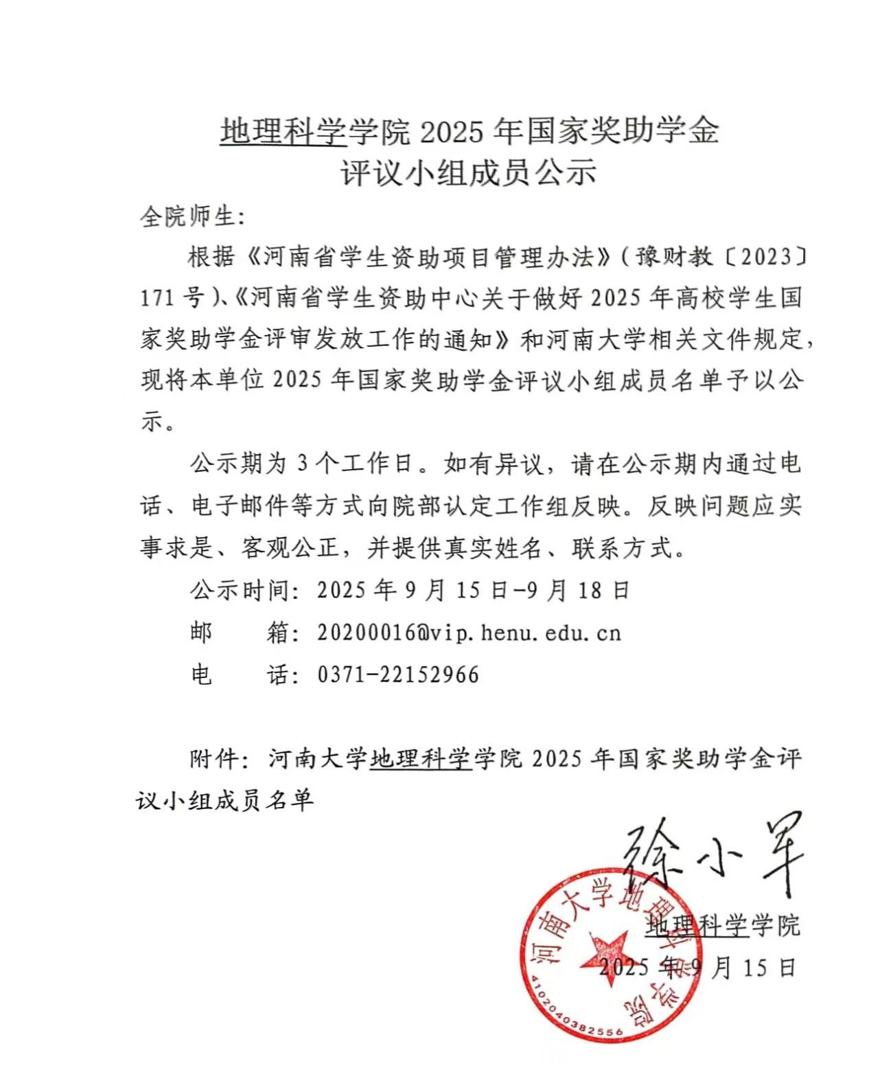 2024级地理科学专业国家奖助学金评议小组
