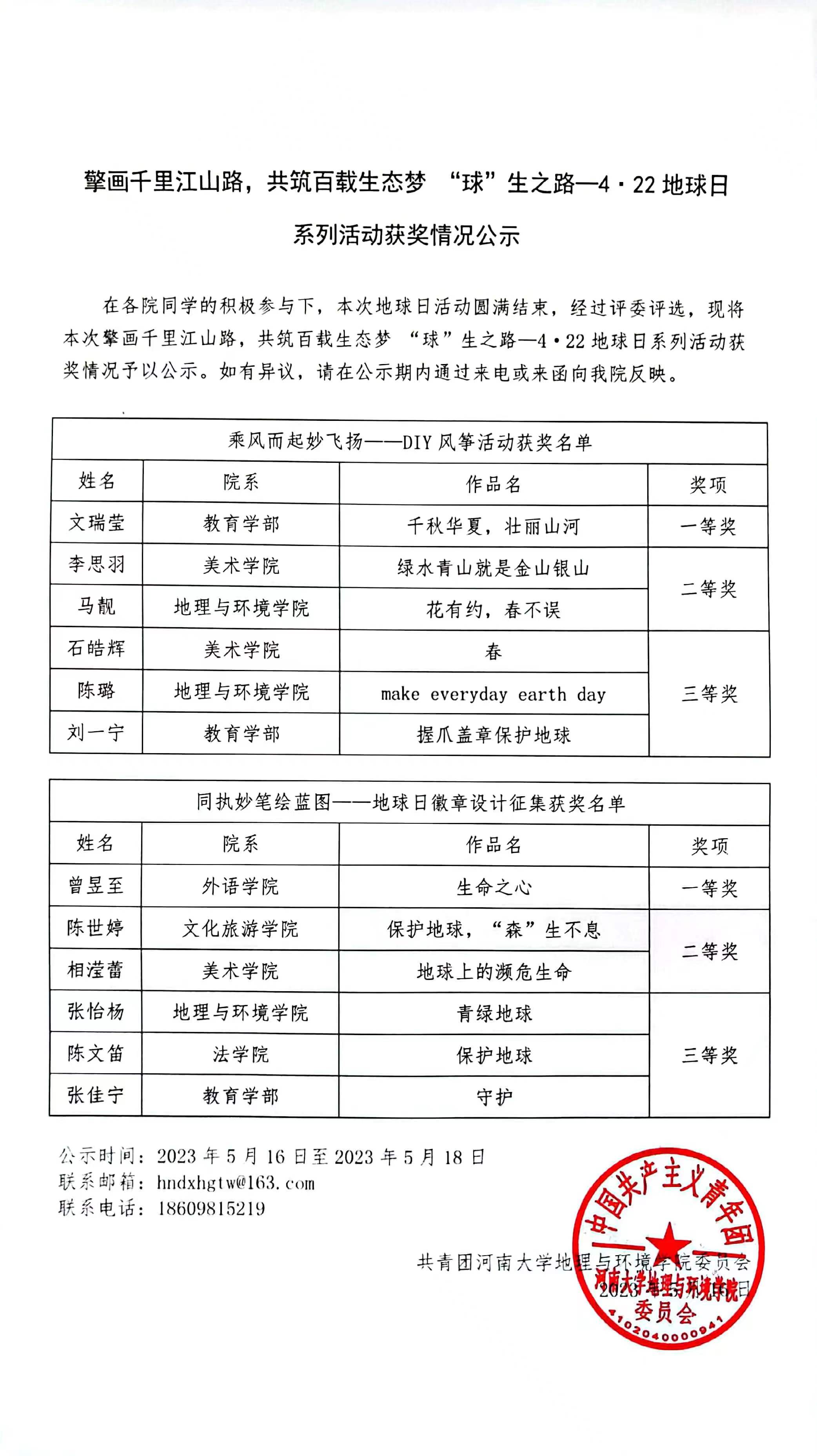 附件 擎画千里江山路,共筑百载生态梦 “球”生之路—4·22地球日 系列活动获奖情况公示