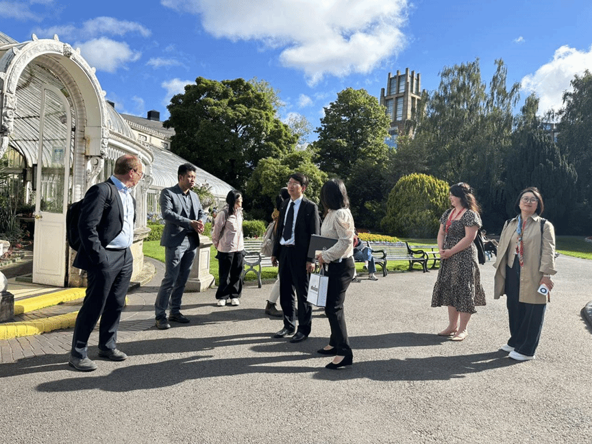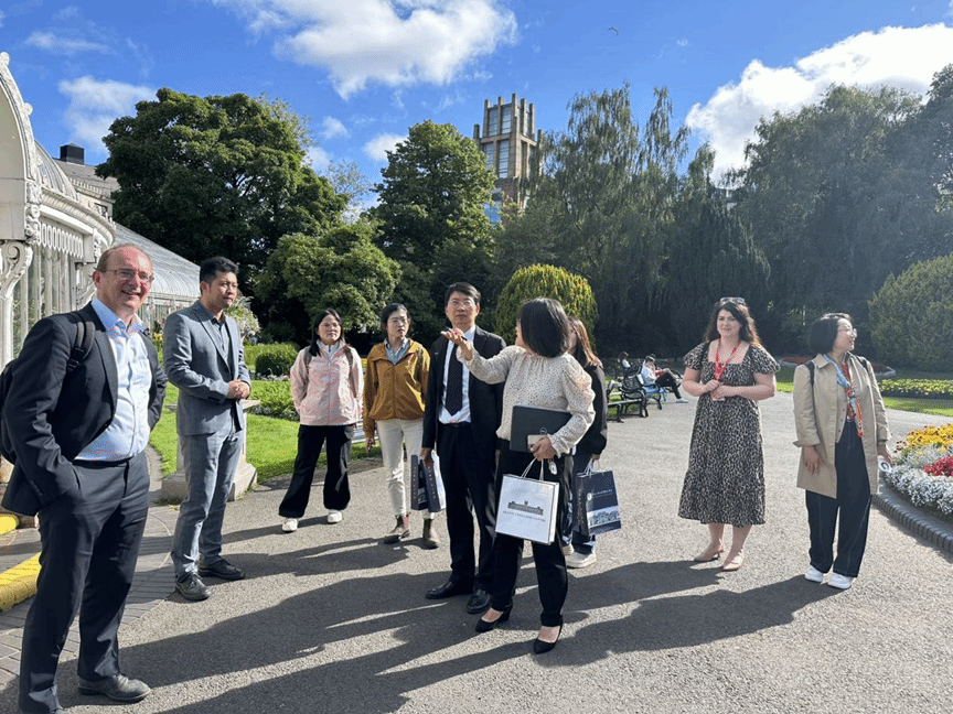 与此同时,学院的同学们也在贝尔法斯特女王大学校园内展开了丰富的参观活动。在导游的引领下,同学们穿越校园的历史长廊,聆听了学校悠久的历史与辉煌的现状,对这座学术殿堂有了更加全面的认识。随后,一行人前往了学校附近的植物园,这里成为了巩固植被地带性、植被分布与环境关系等知识的绝佳场所。同学们在实地观察中,将课堂上学到的理论知识与实际情况相结合,加深了对植被生态学的理解。